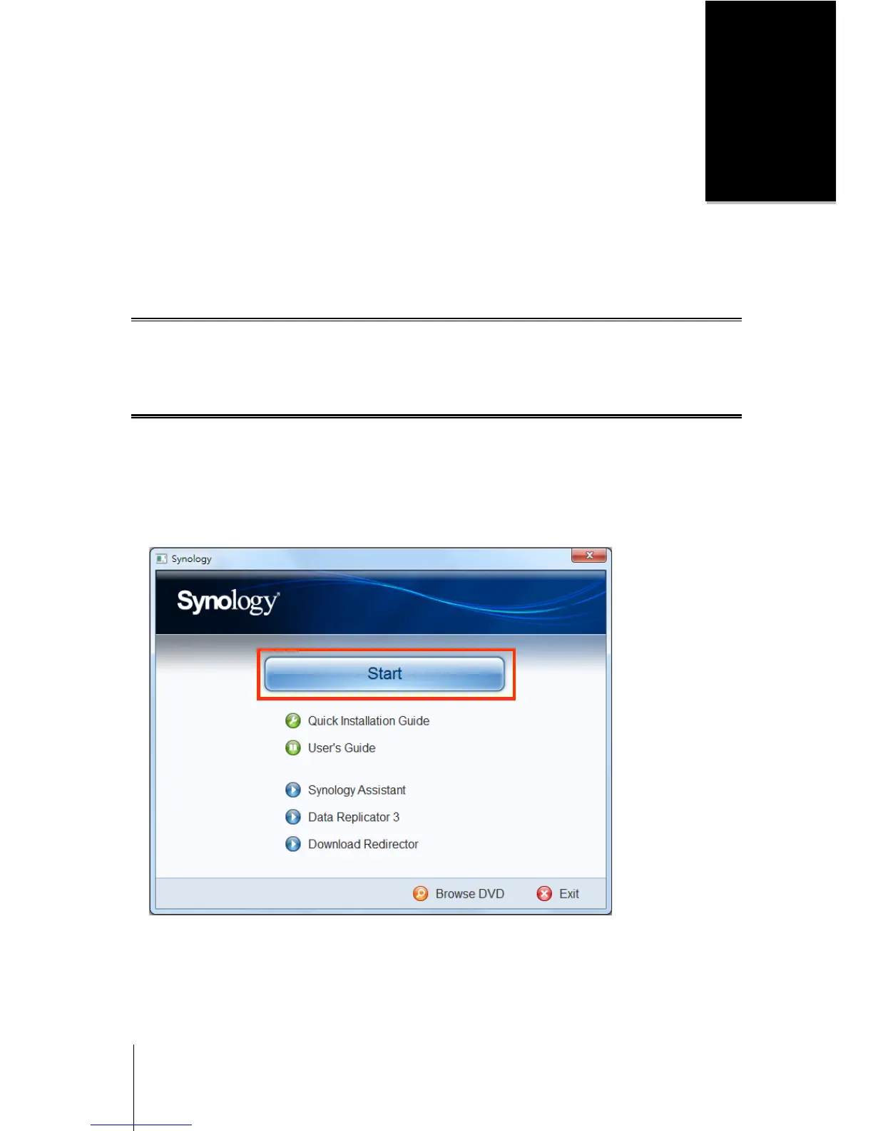 For more information setting up Synology DiskStation and installing DSM, see the Quick Installation Guide that