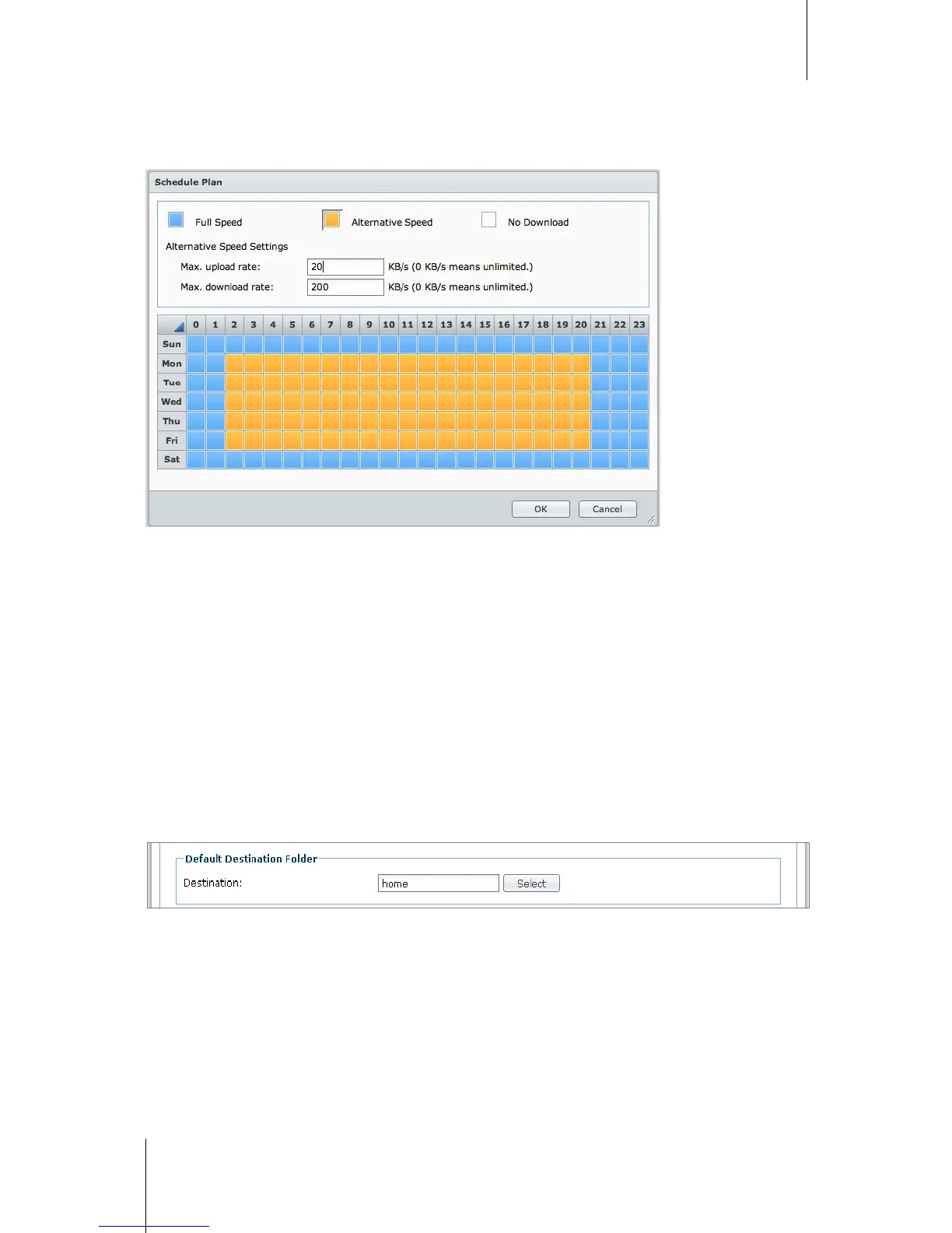 b Choose any of the following and click on the grid to limit download tasks' time or speeds to certain period of