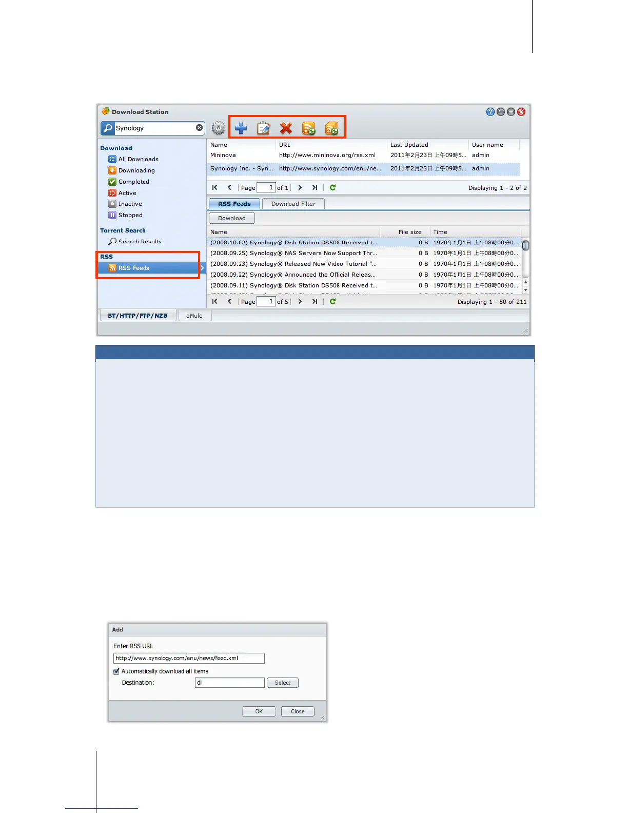 download all items, Download Station will automatically add all RSS feeds listed in the RSS file to download
