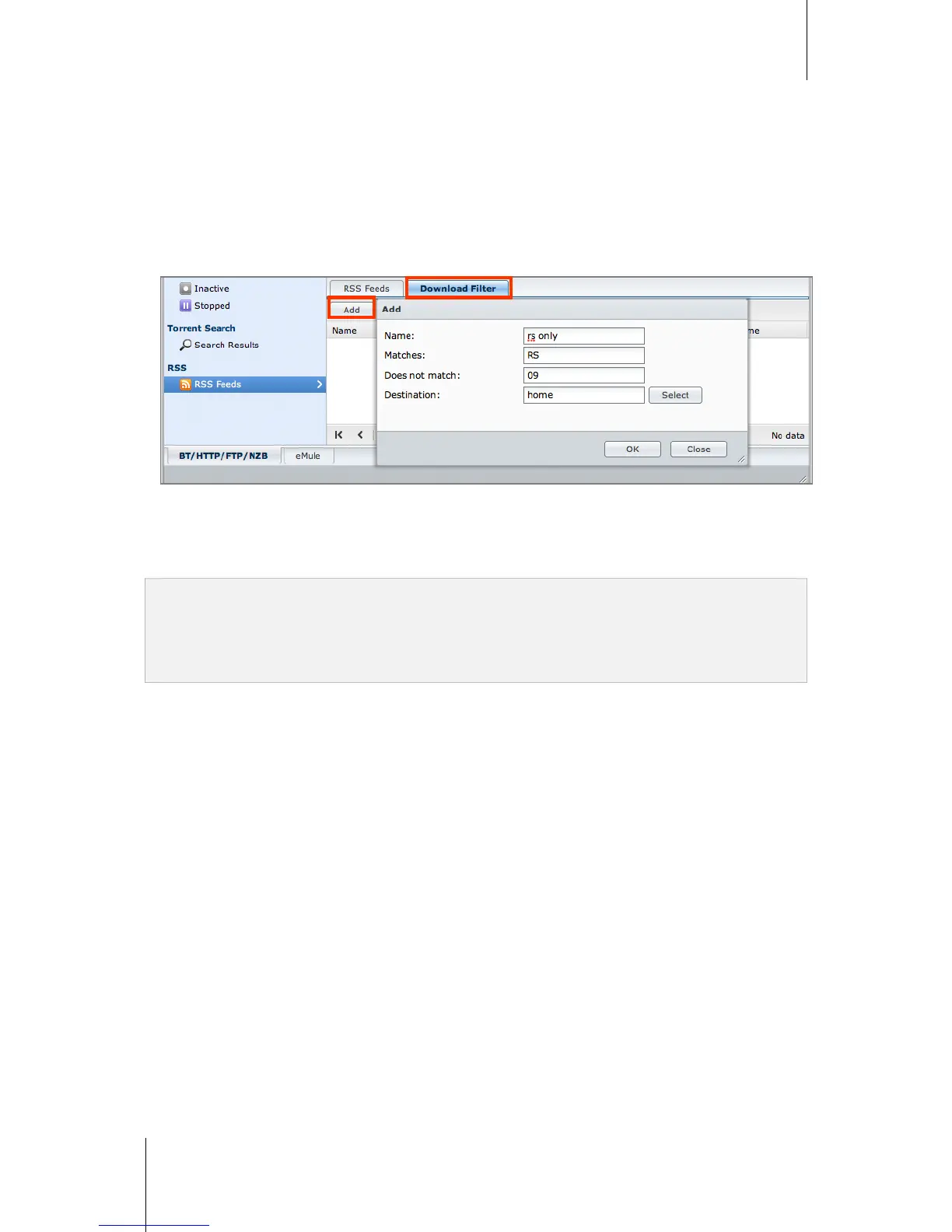 added RSS feeds matching the criteria set in Download Filter.