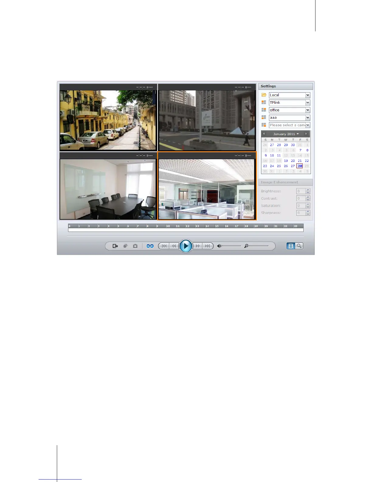 c Choose individual cameras from the four camera drop-down menus