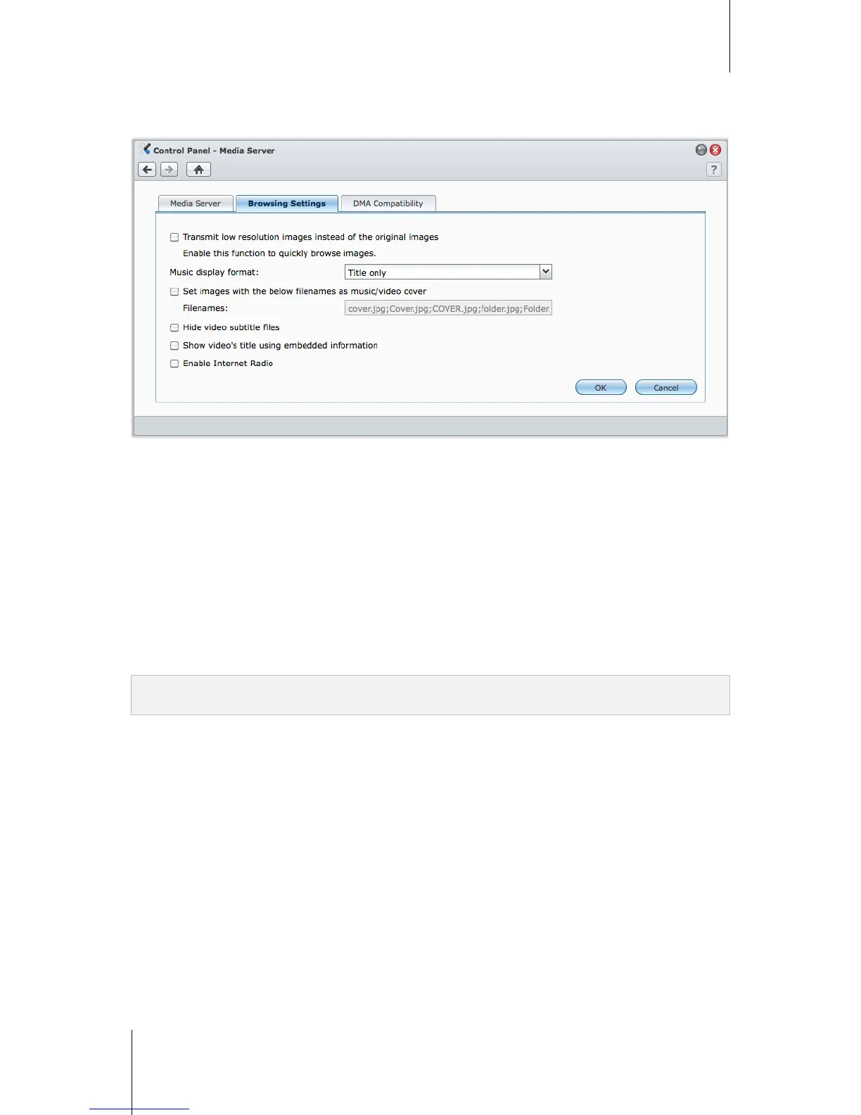 Note: Under most circumstances, you can hide video subtitle files while browsing DiskStation media with a DMA