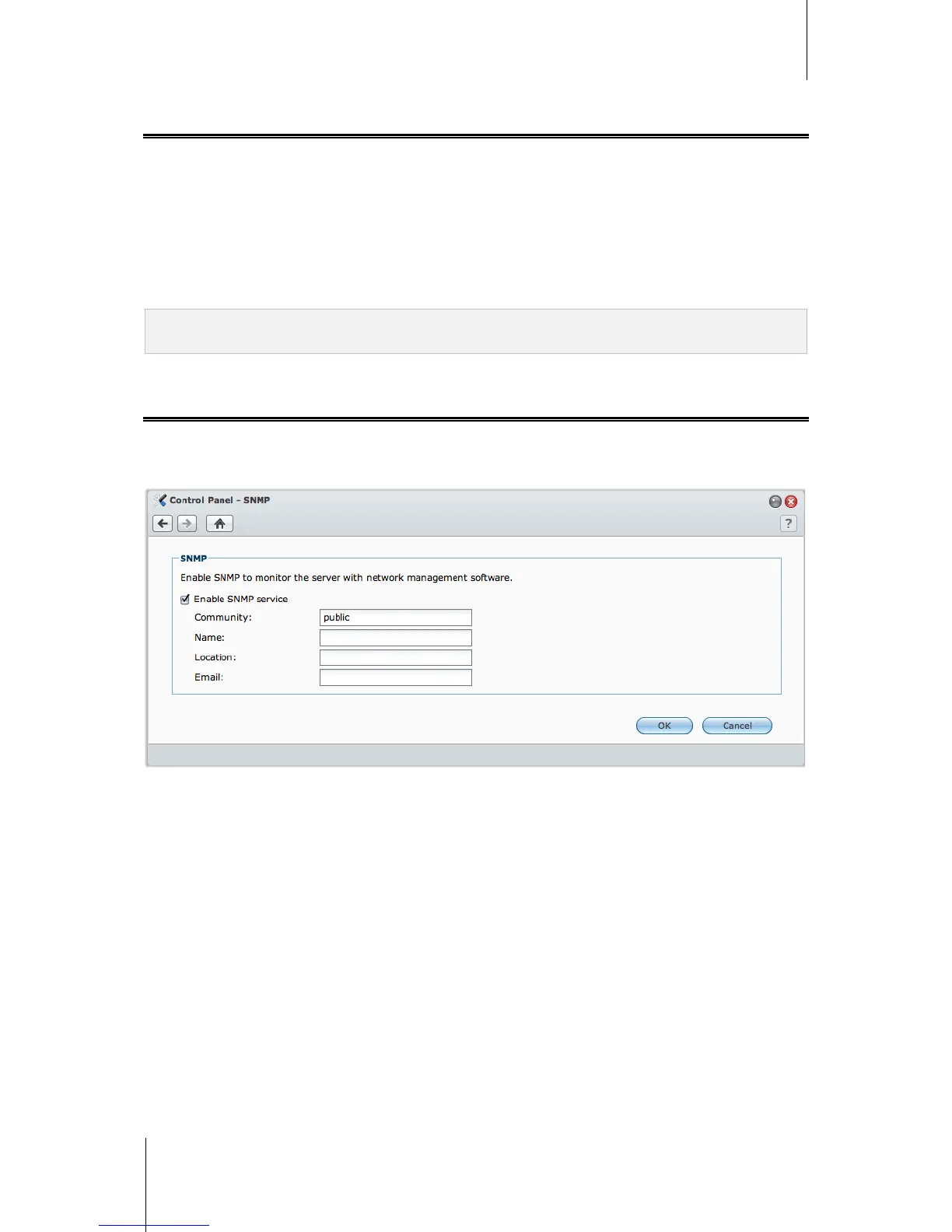 Go to Main Menu > Control Panel > SNMP to enable SNMP service, which allows users to monitor