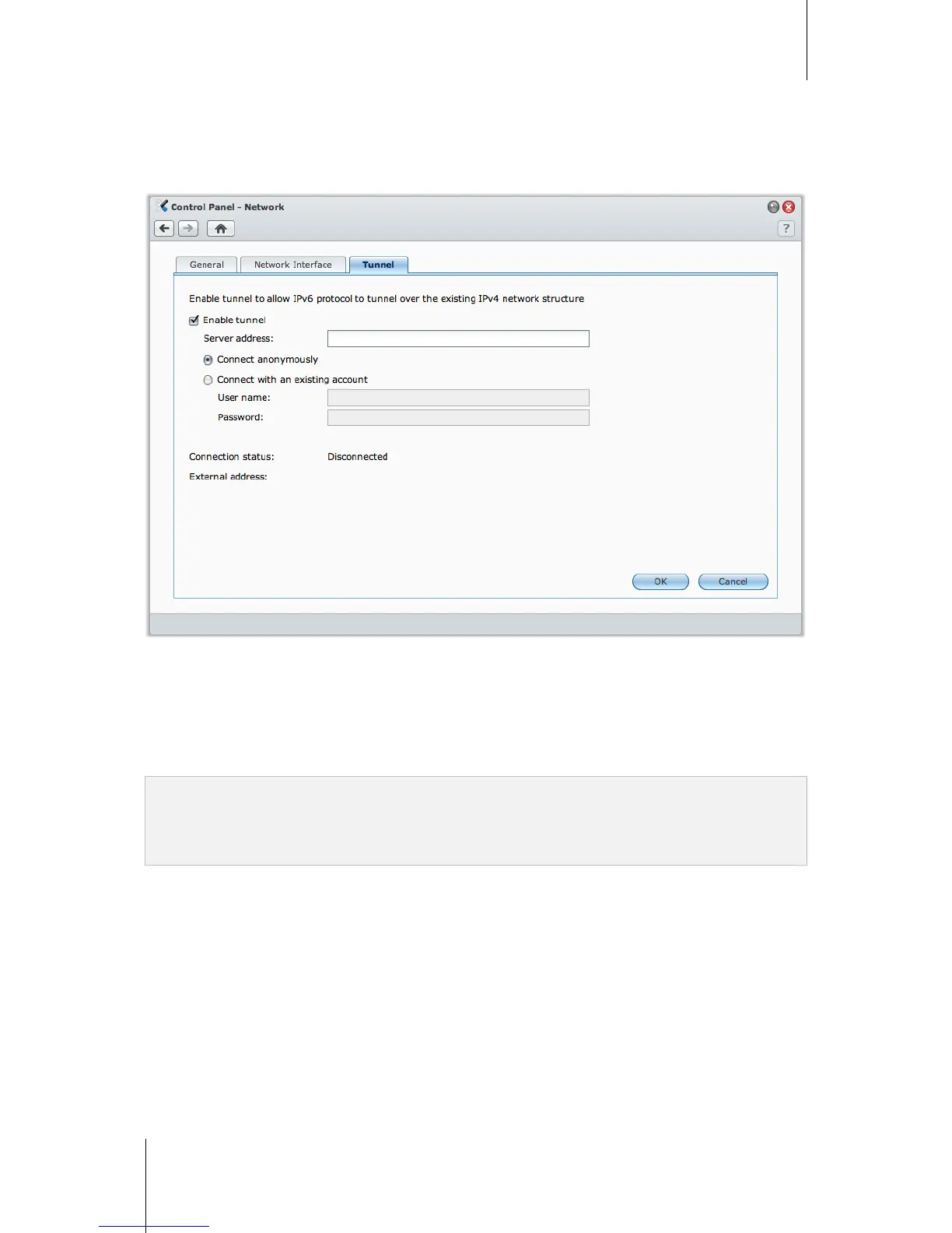 Click the Tunnel tab to allow your DiskStation to gain Internet access via IPv6 under the IPv4 environment.