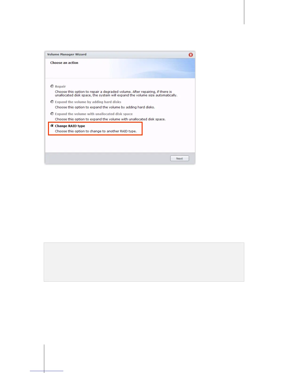 If you want to change the RAID type, enough number of hard drives for the new type is required. See