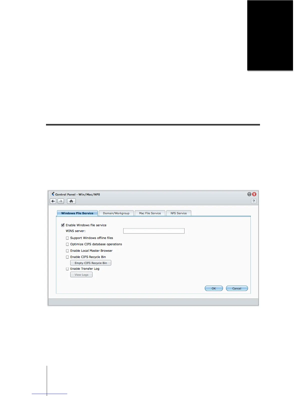 Click the Windows File Service tab at Main Menu > Control Panel > Win/Mac/NFS to enable Synology