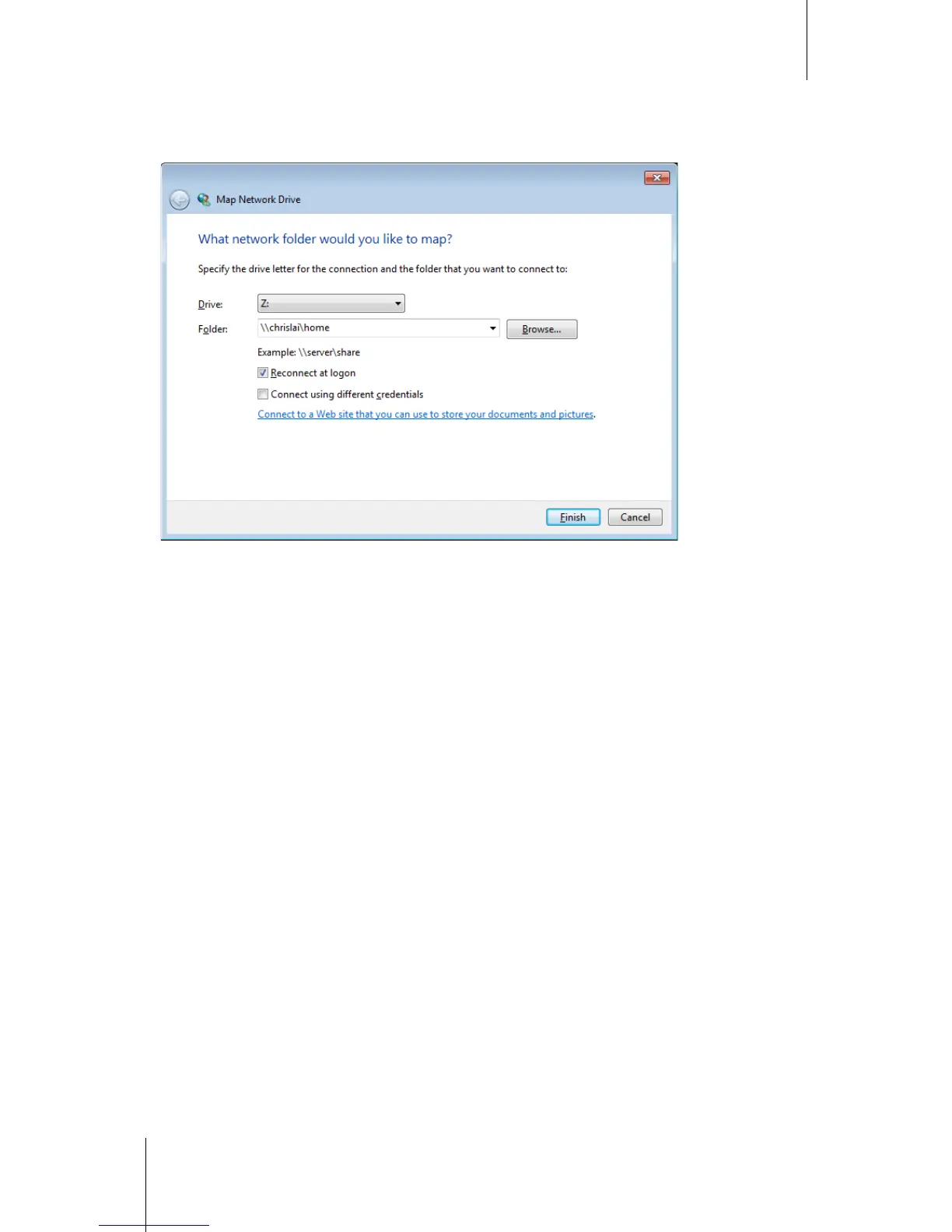 1 Open a Windows Explorer window and choose Tools > Map network drive to show the Map Network Drive