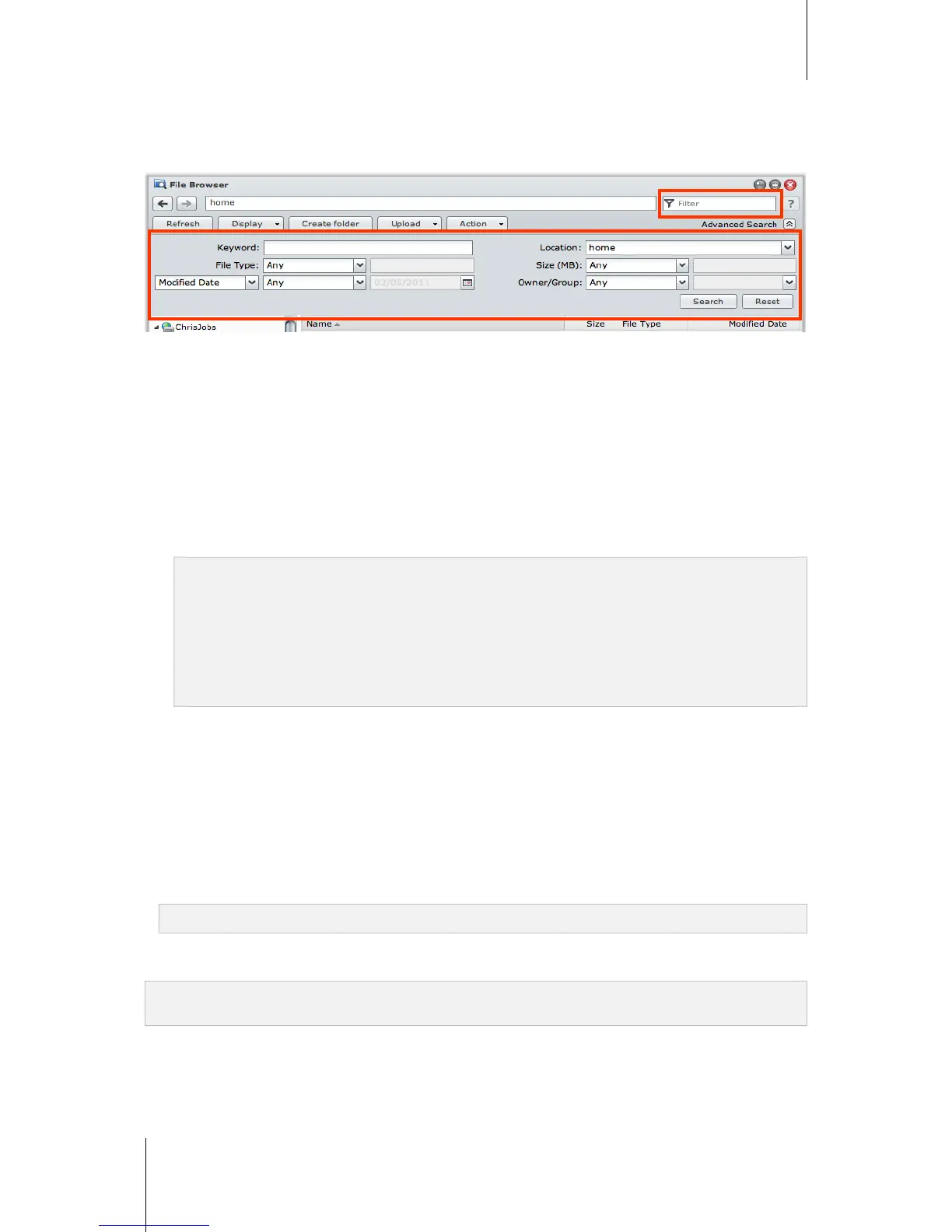2 At the top-right corner of the File Browser window, click the button to the right of Advanced Search to reveal