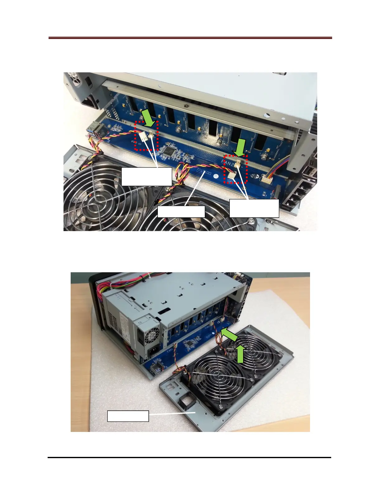 2.2.14 Plug back the two (2) fan cable connectors (Marked by the red rectangles) to their
