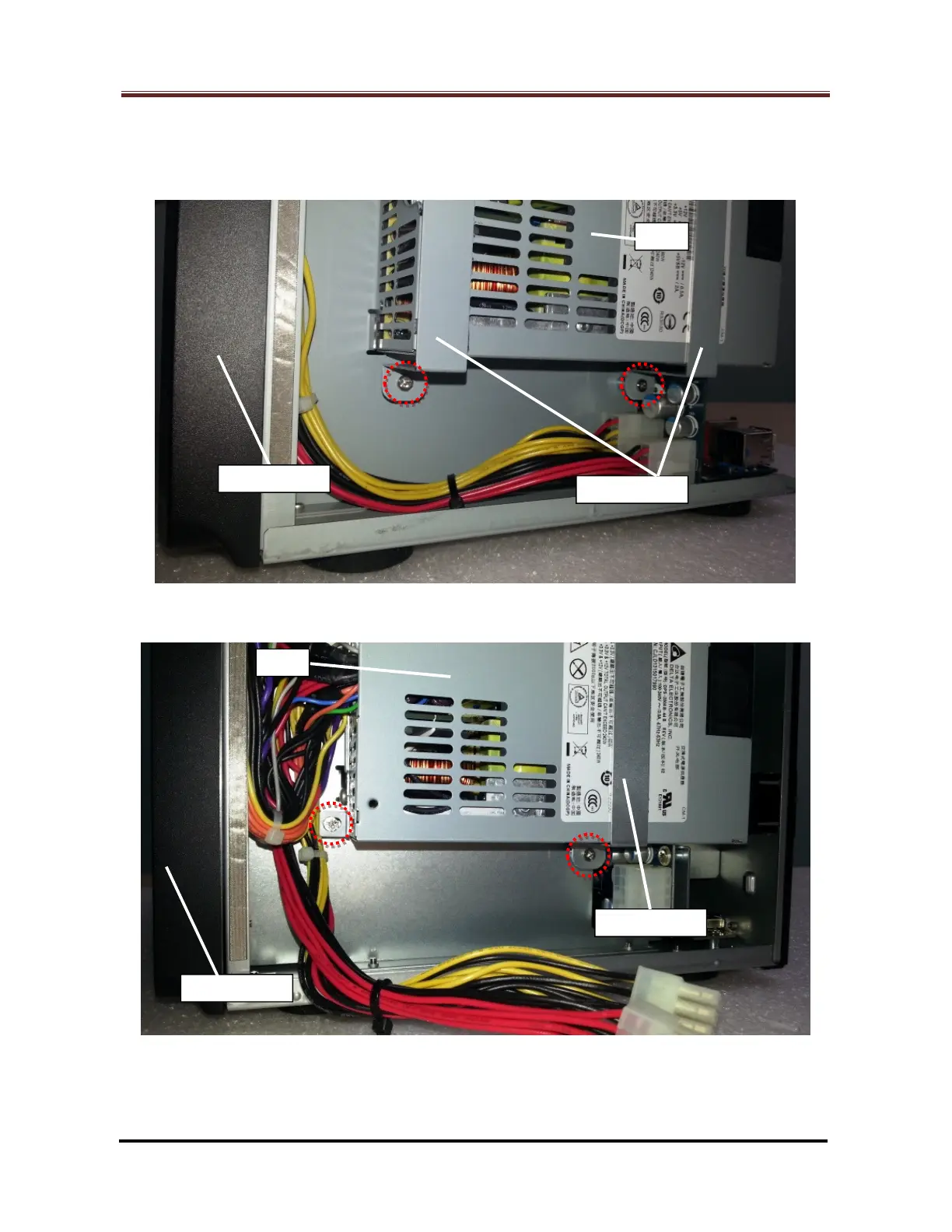 2.2.6 Fix the two (2) screws (Marked by the red circles) to secure the bracket(s)/PSU.