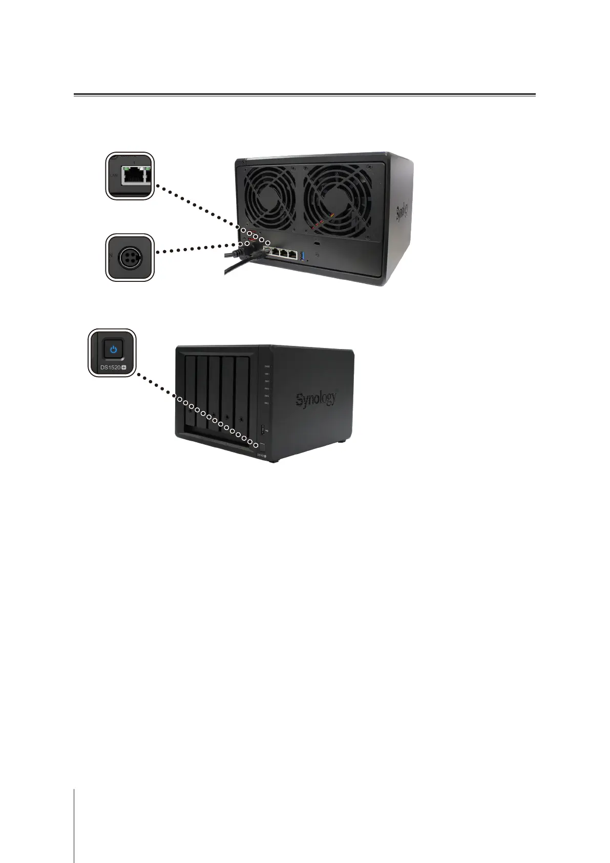 Use the LAN cable to connect the Synology NAS to your switch, router, or hub.