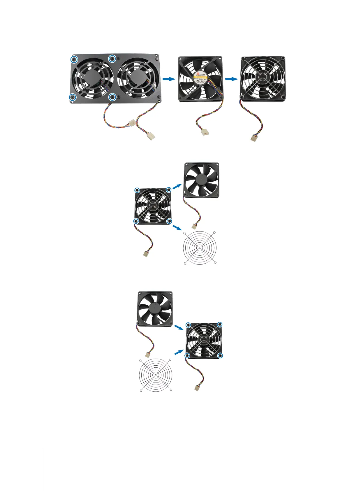 Attach the fan guard to the new fan, then tighten the screws to secure the fan guard.