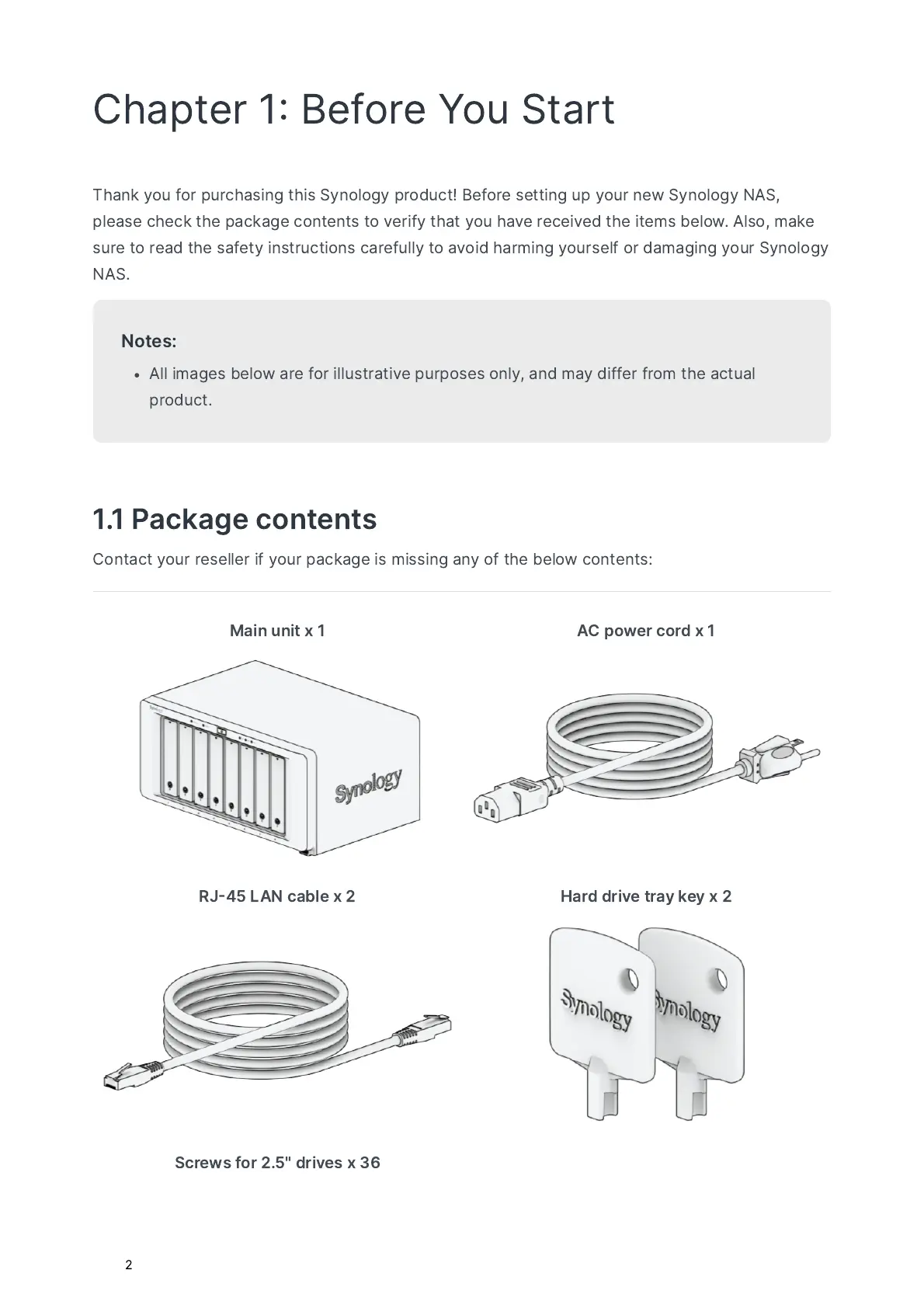Synology DS1823XS+ - Chapter 1: Before You Start; 1.1 Package Contents