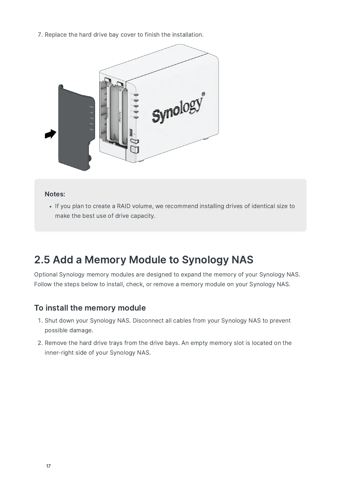 Synology DS224+ - 2.5 Add a Memory Module to Synology NAS