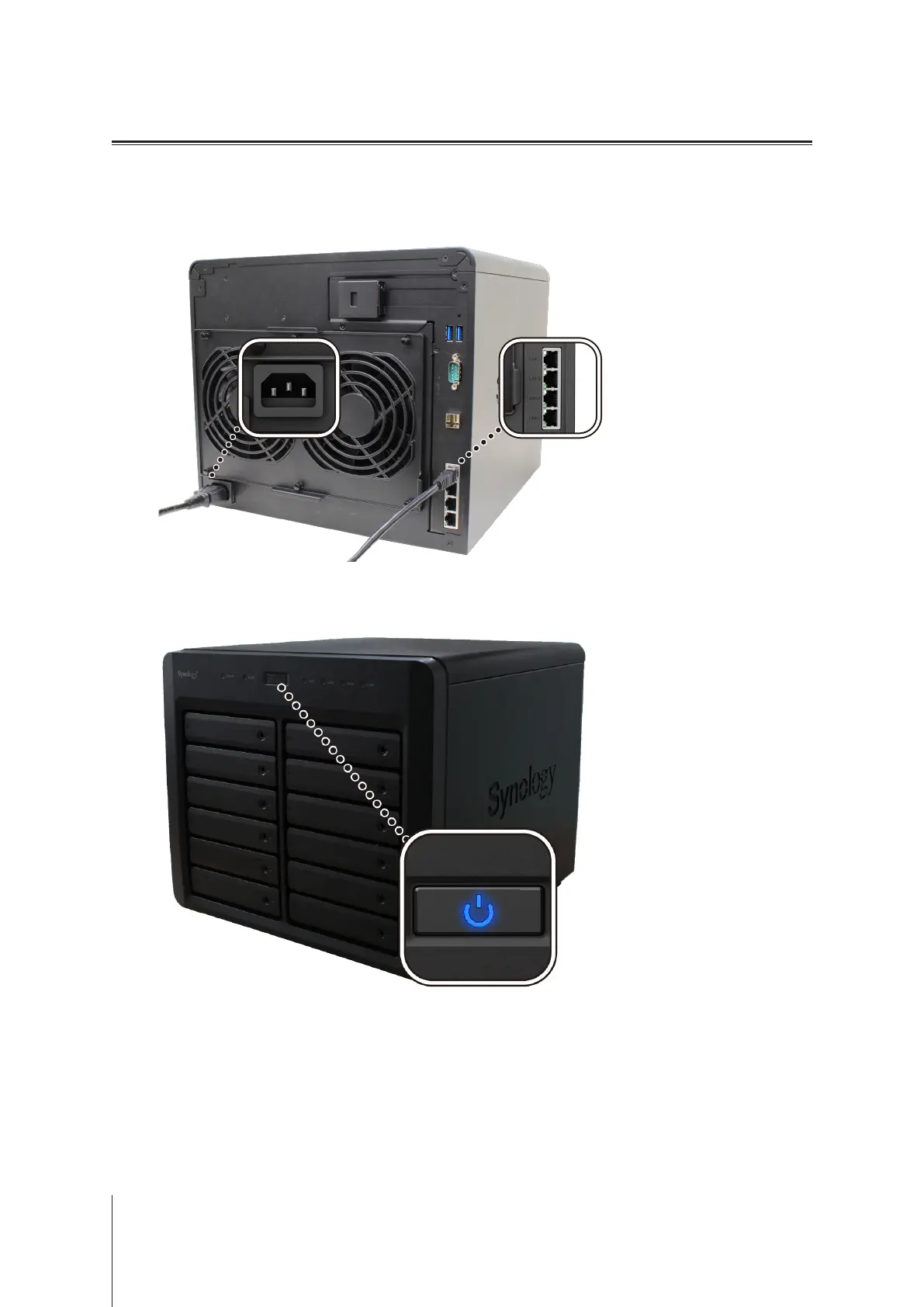 Use the LAN cable to connect the Synology NAS to your switch, router, or hub.