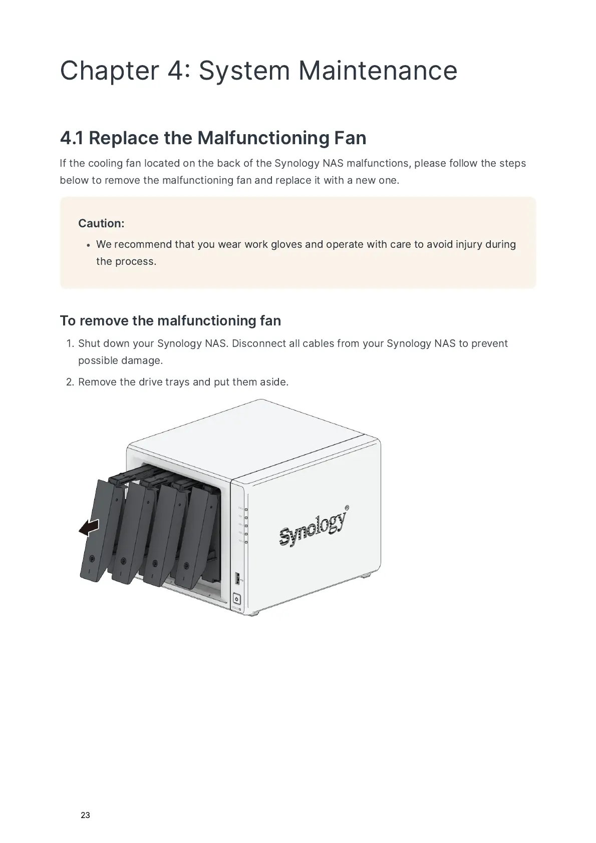Synology DS423+ - Chapter 4: System Maintenance; 4.1 Replace the Malfunctioning Fan