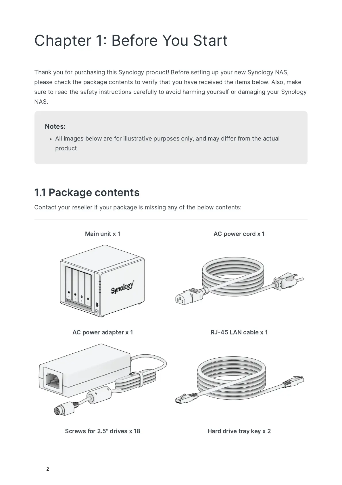 Synology DS423+ - Chapter 1: Before You Start; 1.1 Package contents