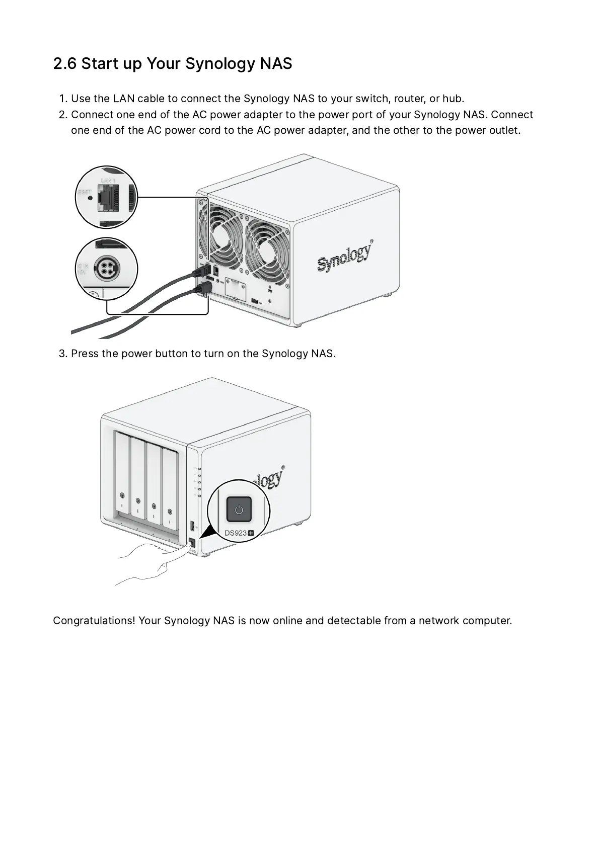 Synology DS923+ - 2.6 Start up Your Synology NAS