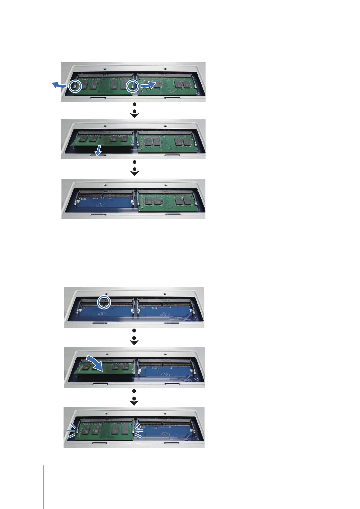 Insert the memory module into the slot. Make sure that the module is properly inserted.