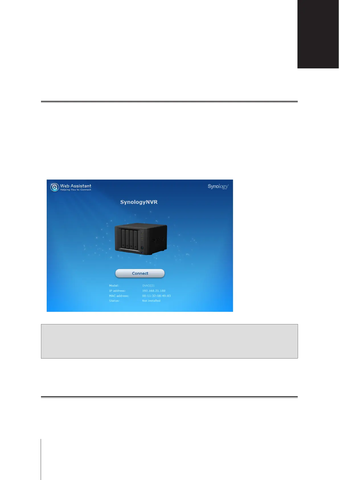 • The Network Video Recorder must be connected to the Internet to install DSM with Web Assistant.