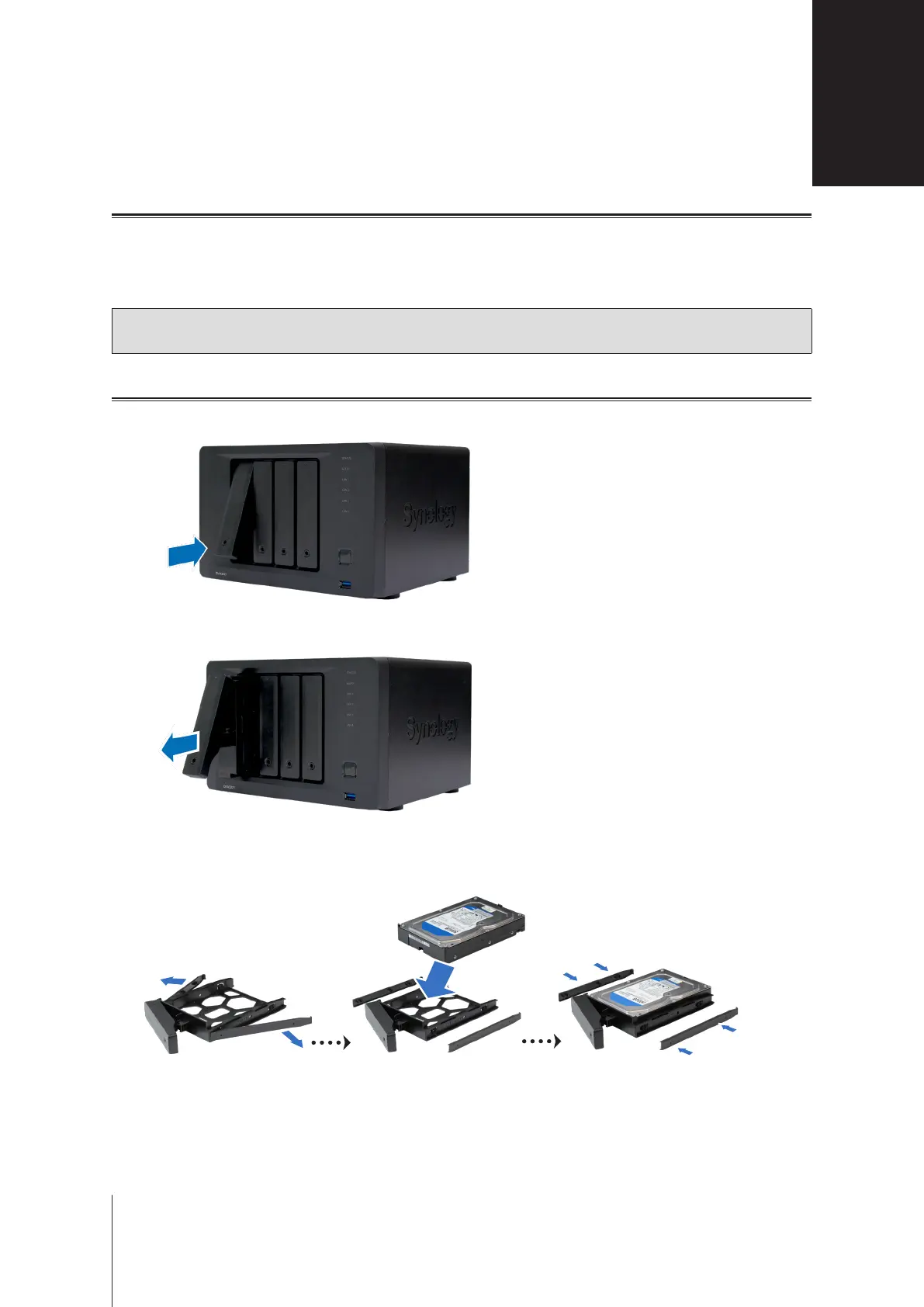 Remove the fastening panels from the sides of the drive tray. Place the drive in the drive