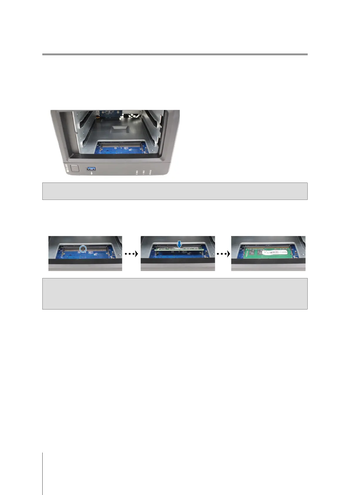 • Synology will not provide complete product warranty or technical support if a non-Synology memory module