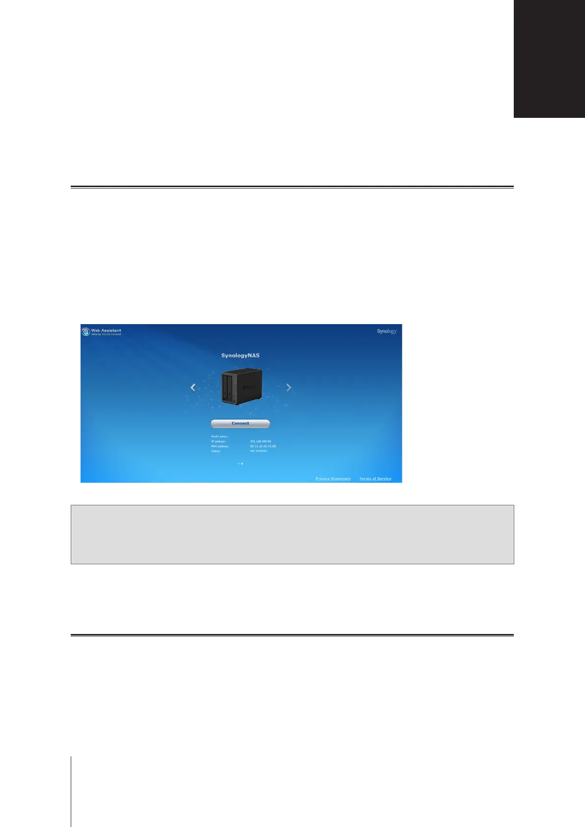 Web Assistant will be launched in your web browser. It will search for and nd the Synology NAS within the