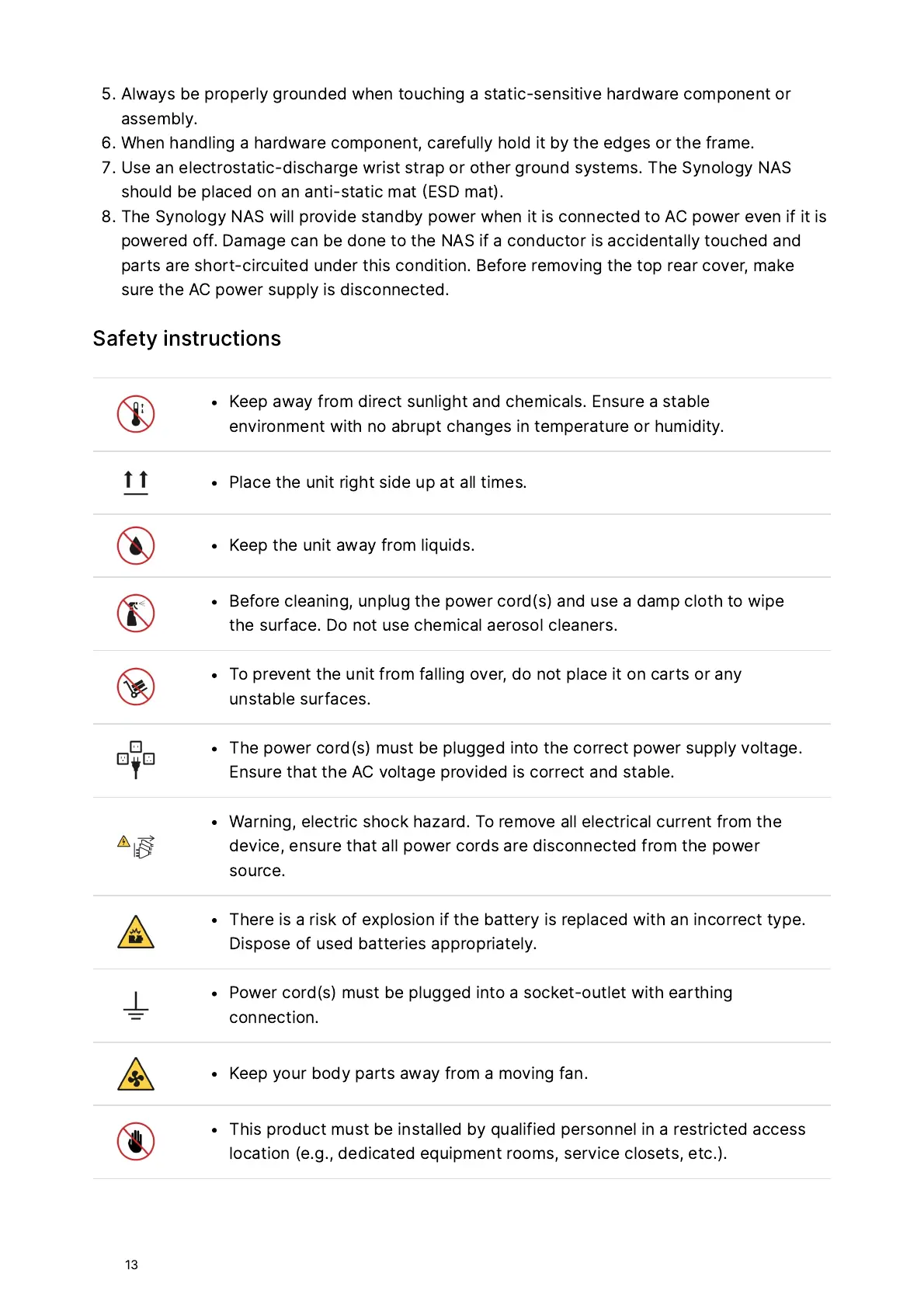 Synology RS2423+ - Safety Instructions