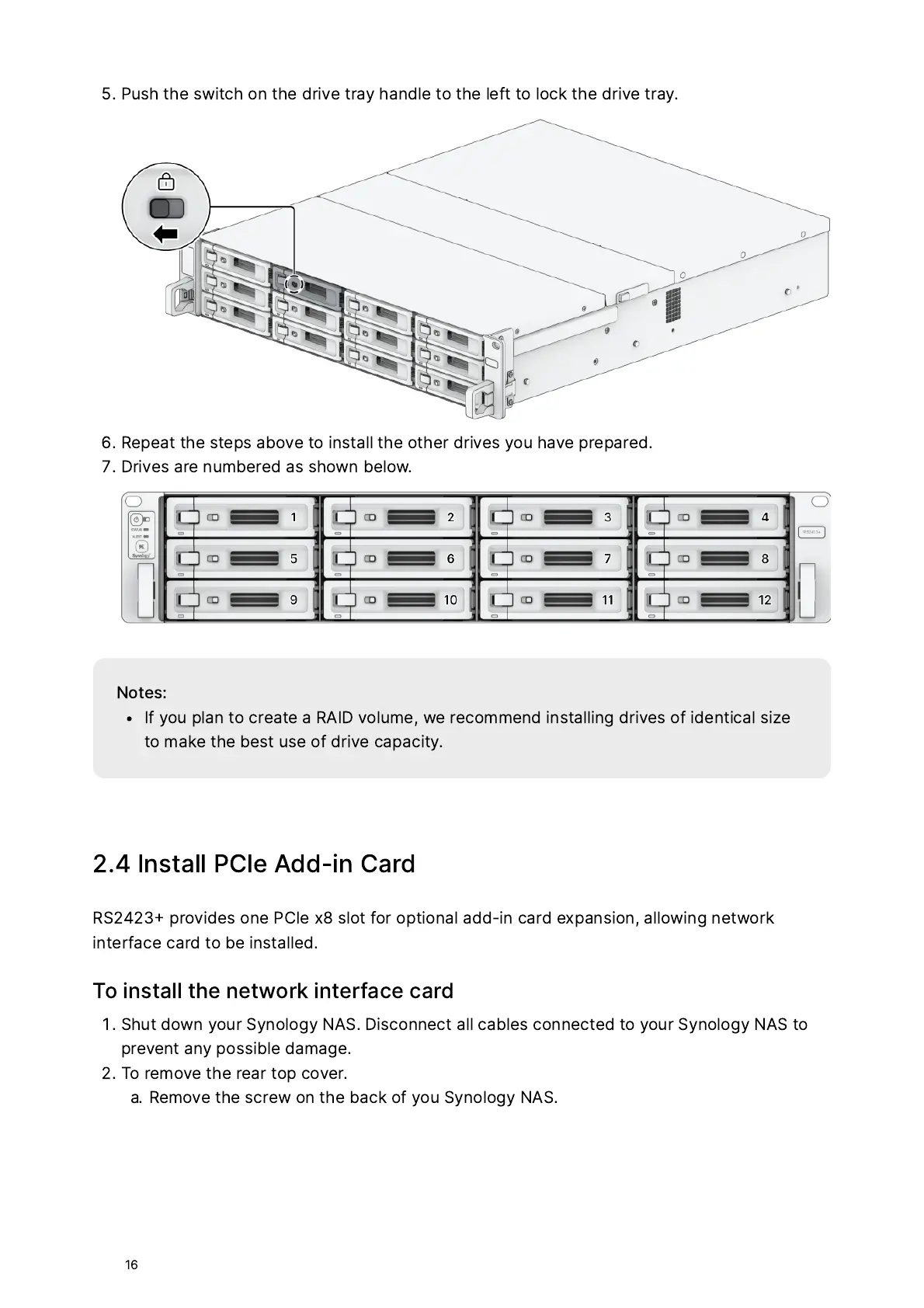 Synology RS2423+ - 2.4 Install PCIe Add-in Card