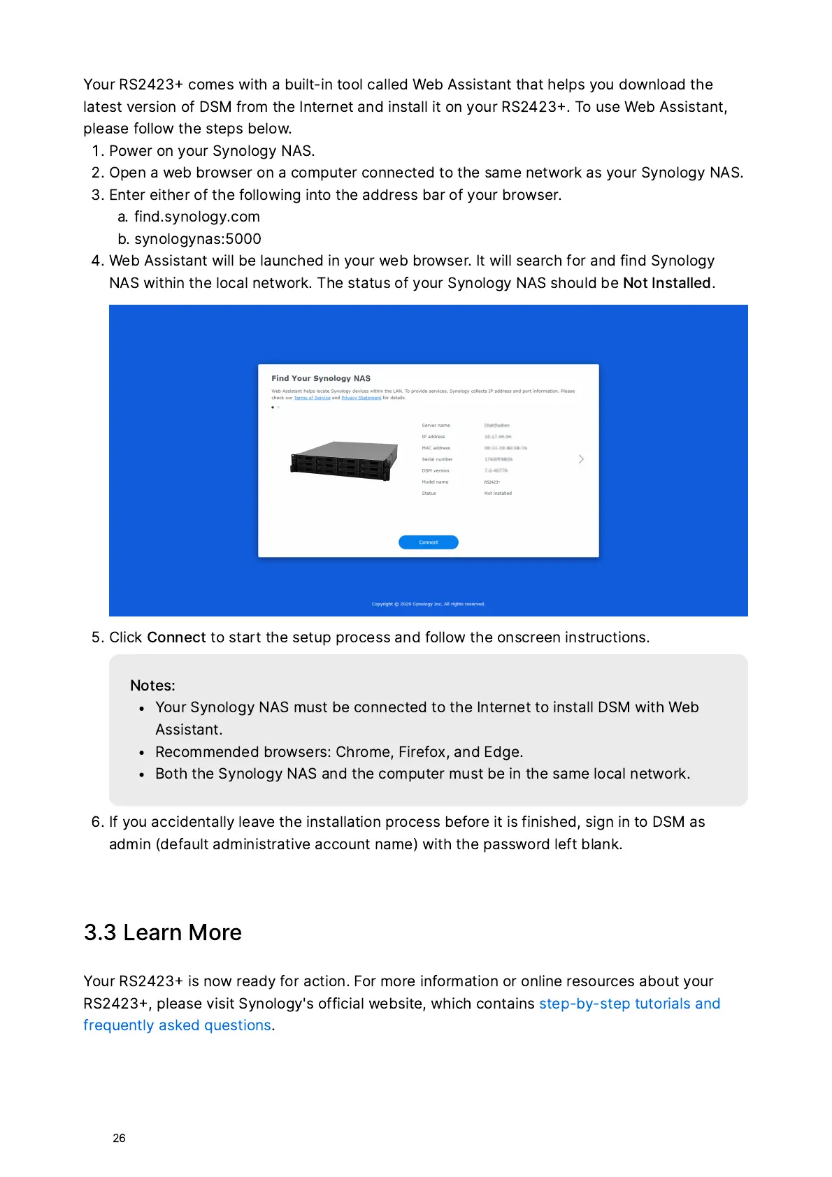 Synology RS2423+ - 3.3 Learn More