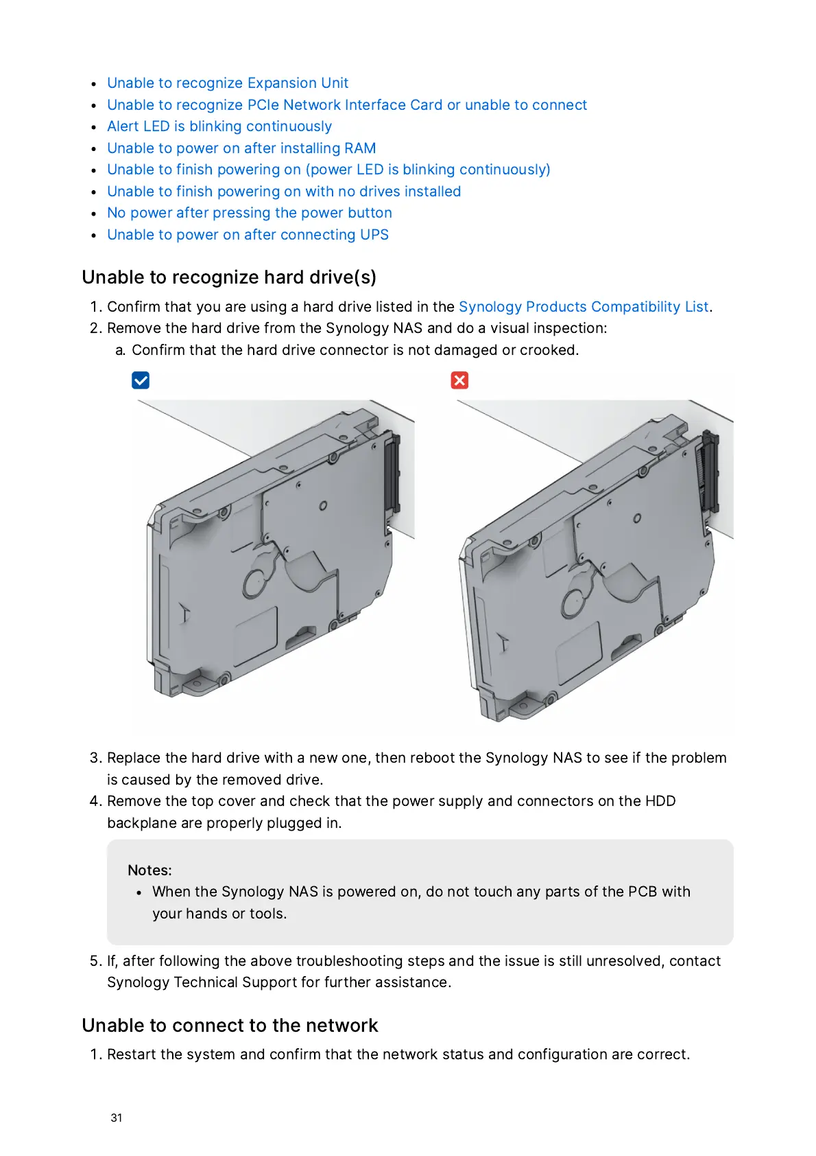 Synology RS2423+ - Unable to Recognize Hard Drive(s); Unable to Connect to the Network