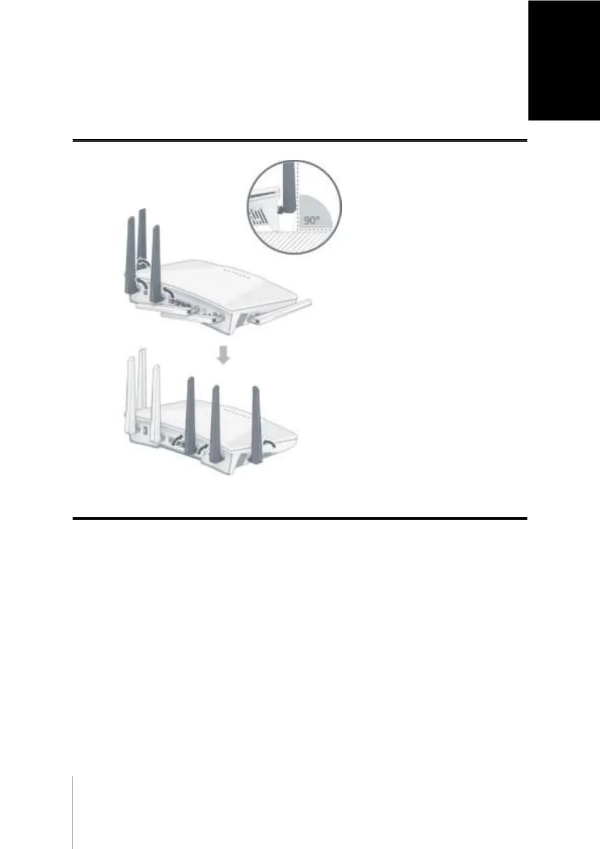 For optimal Wi-Fi performance, tilt the antennas so that they are at a 90 degree angle to the surface.