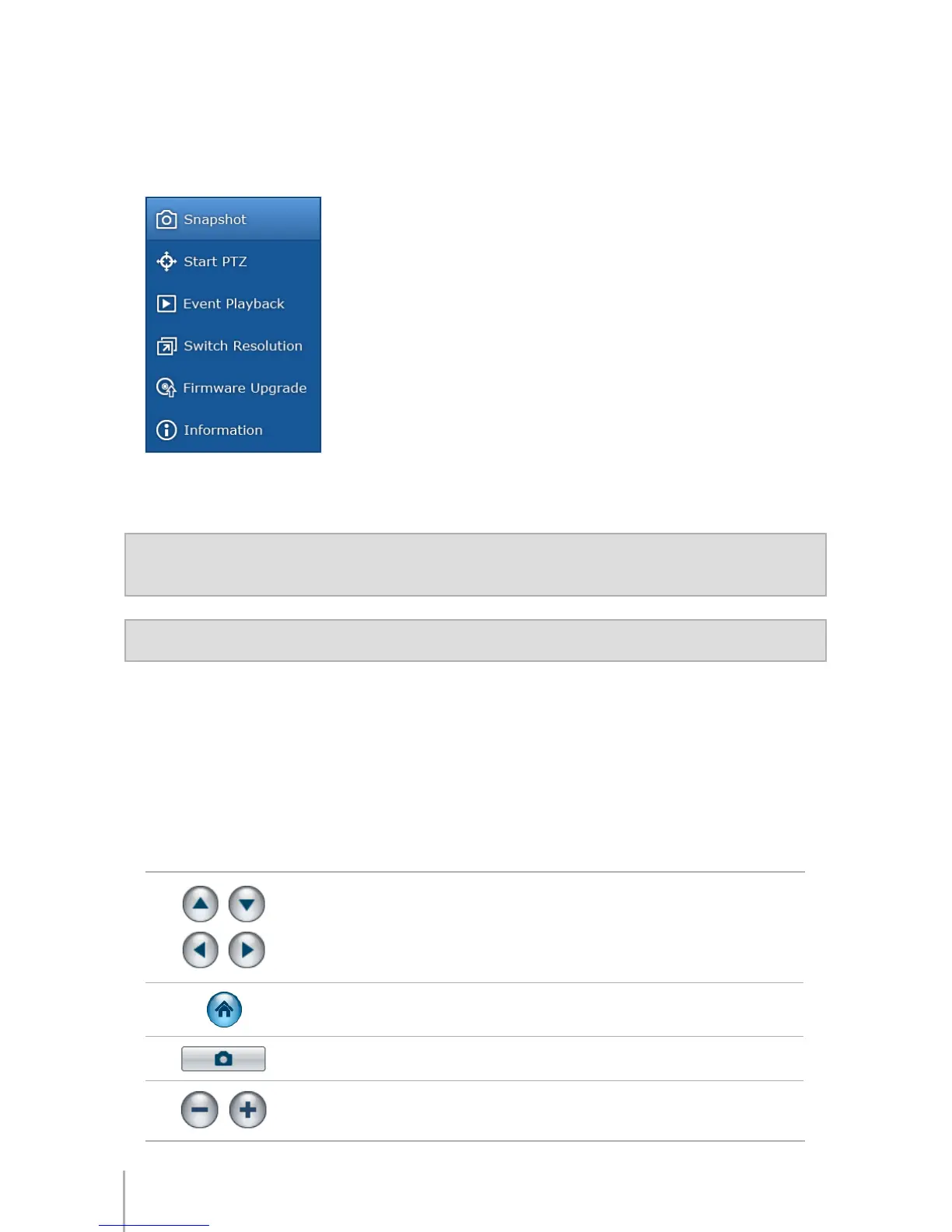 and use the PTZ control panel to adjust the camera's direction and to zoom in and