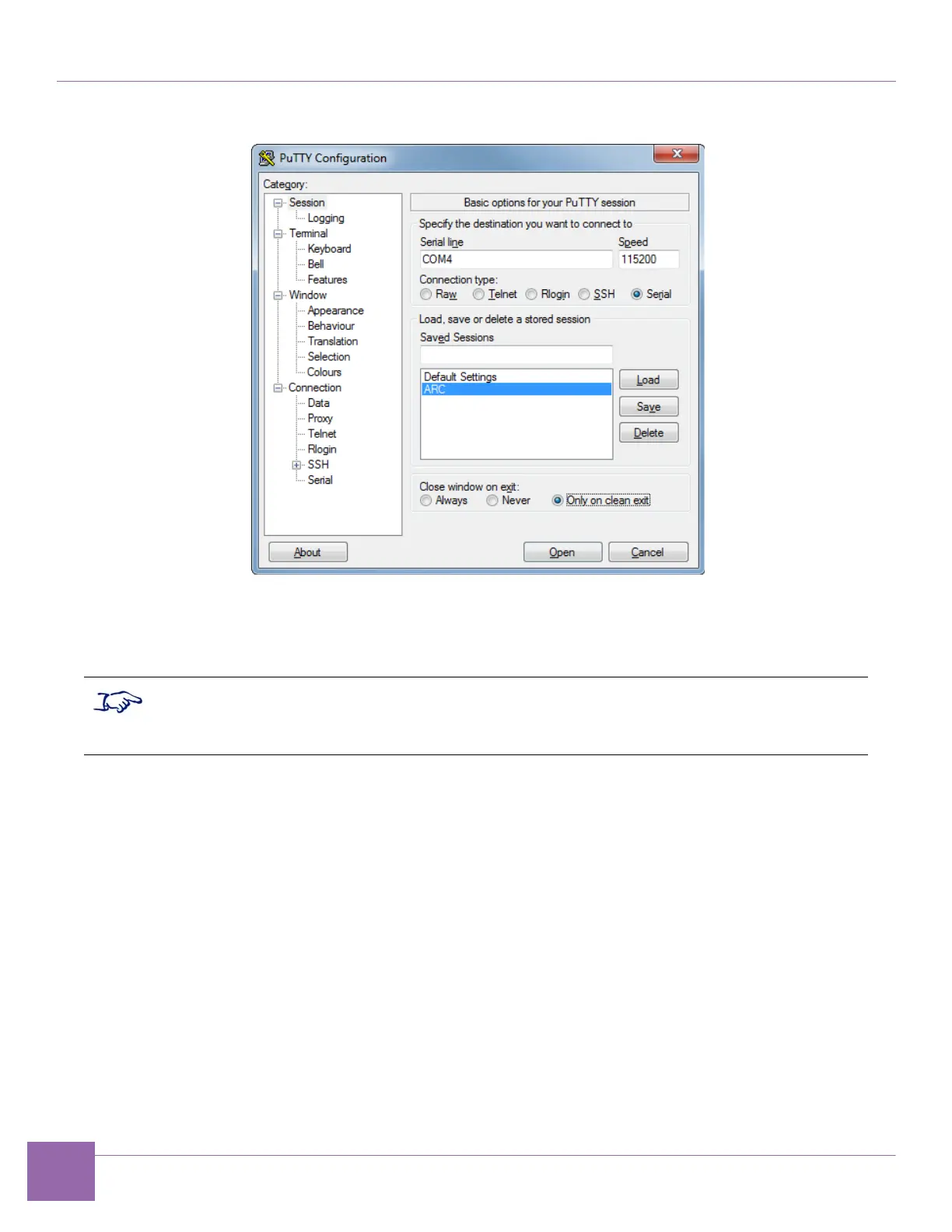 Figure 3-2 PuTTY Configuration