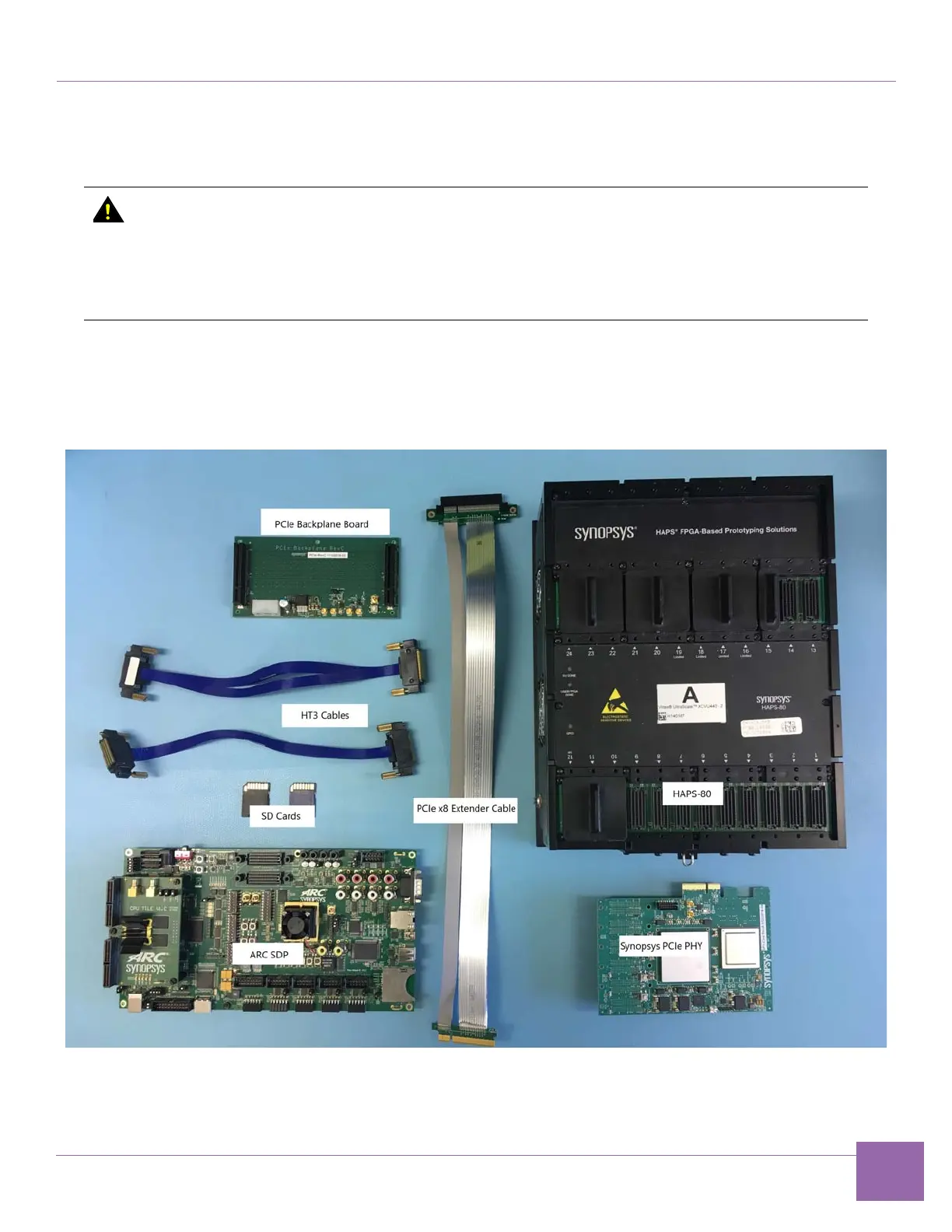The HAPS, ARC SDP Mainboard and the PHY Daughter Card contain static sensitive