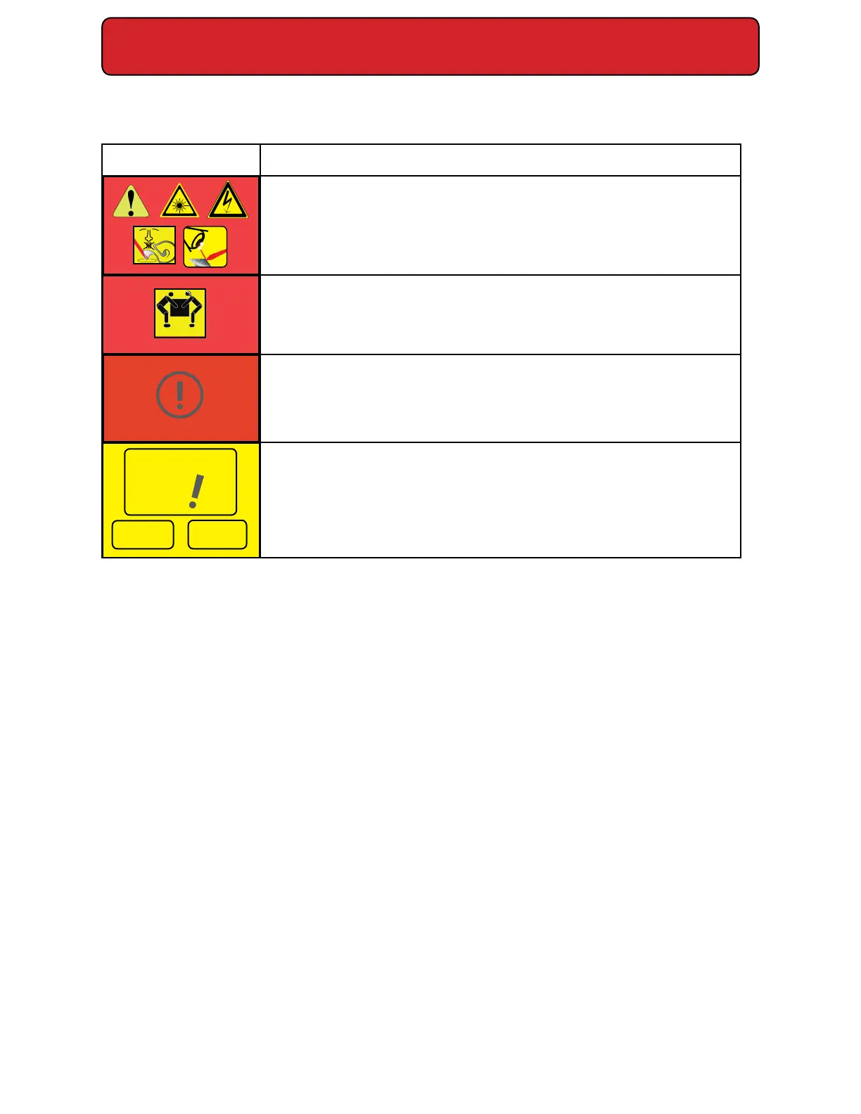 Figure 2-1 Warning, danger, caution and content specic information icons and denitions.