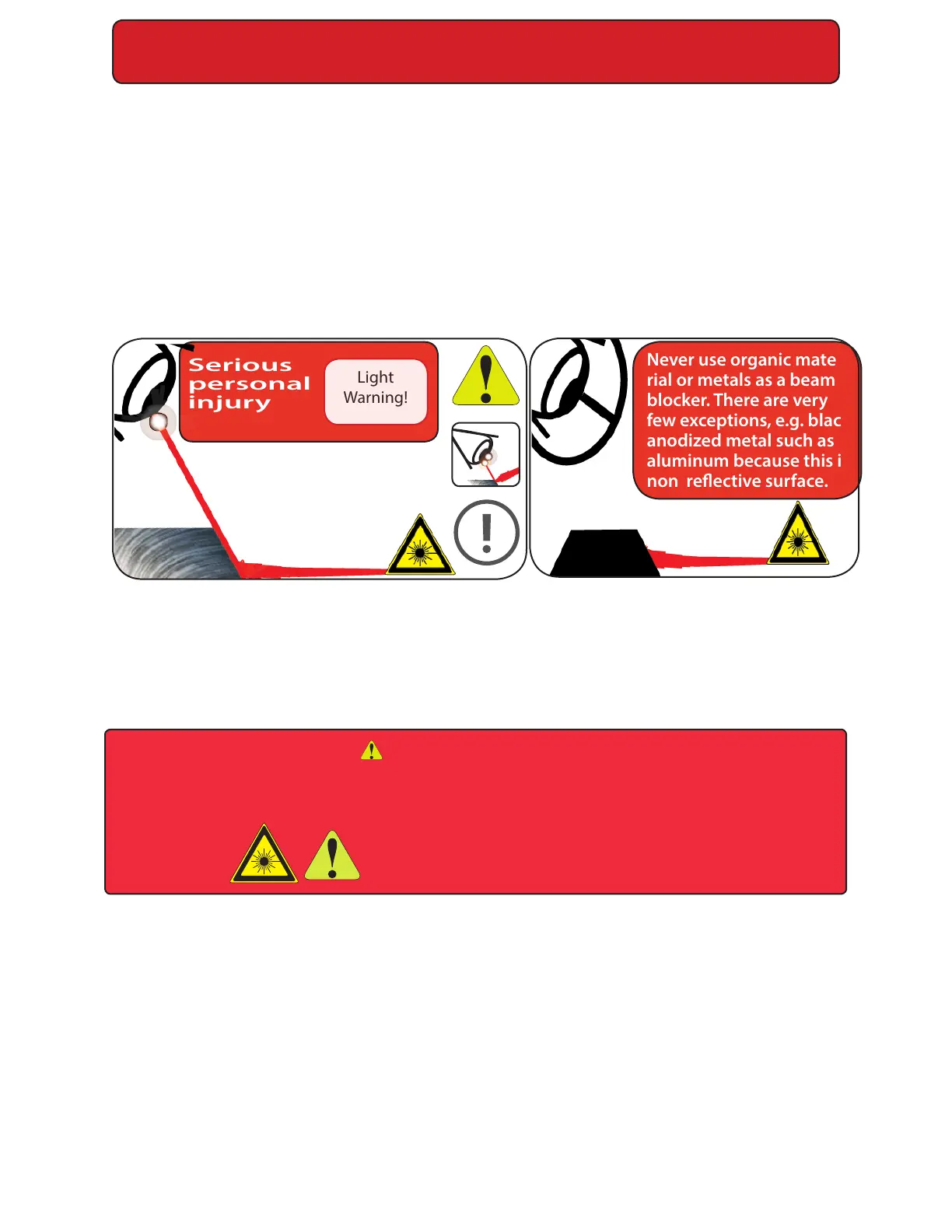 similar non-scattering, noncombustible material as the beam block. Never use organic materi-