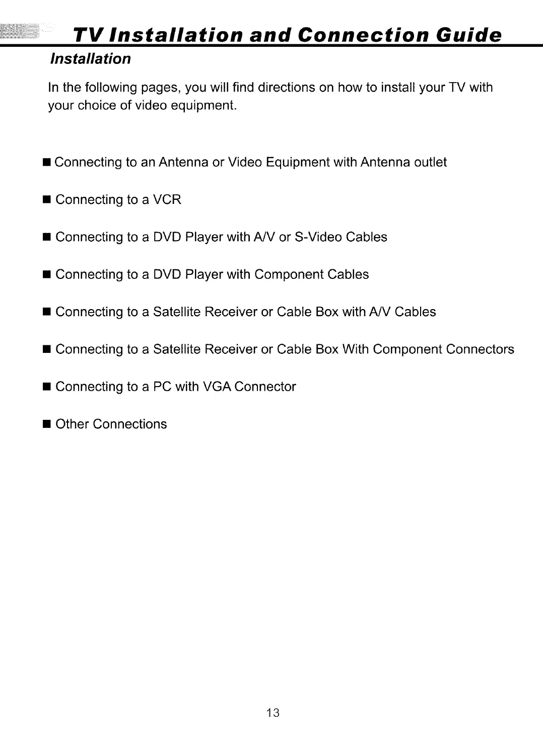 TV Installation and Connection Guide