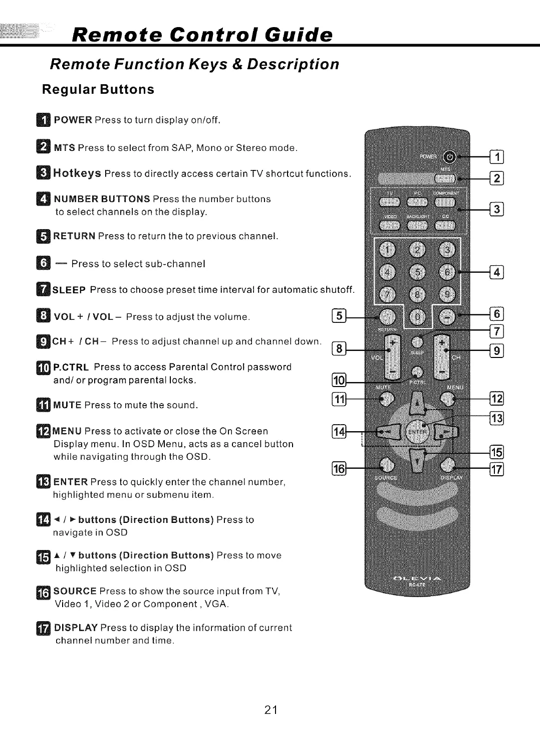 Remote Function Keys & Description