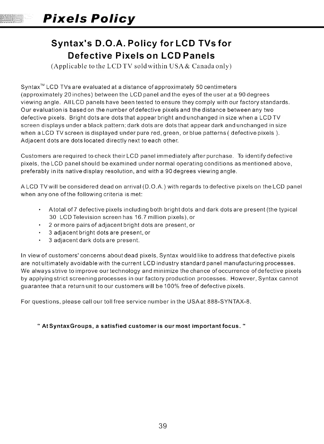 Syntax's D.O.A. Policy for LCD TVs for