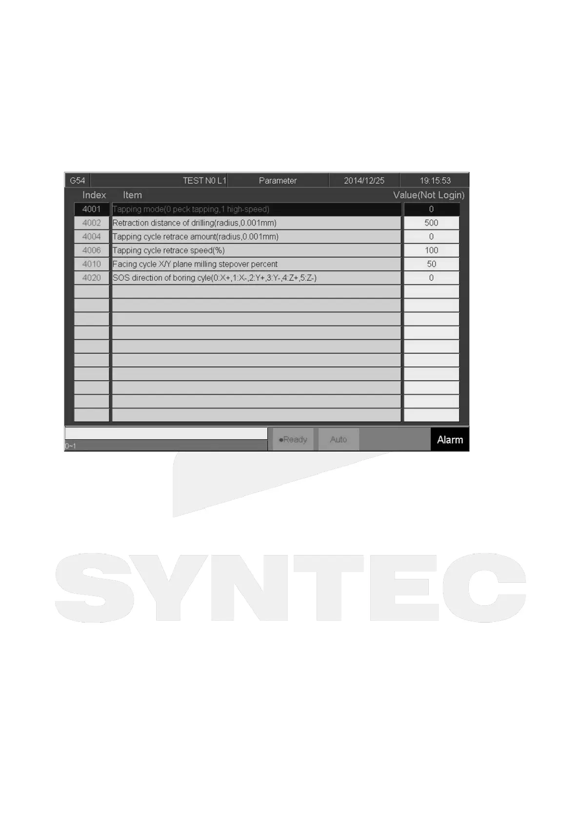Syntec 60CA - Parameters and Diagnosis; User Parameter Settings
