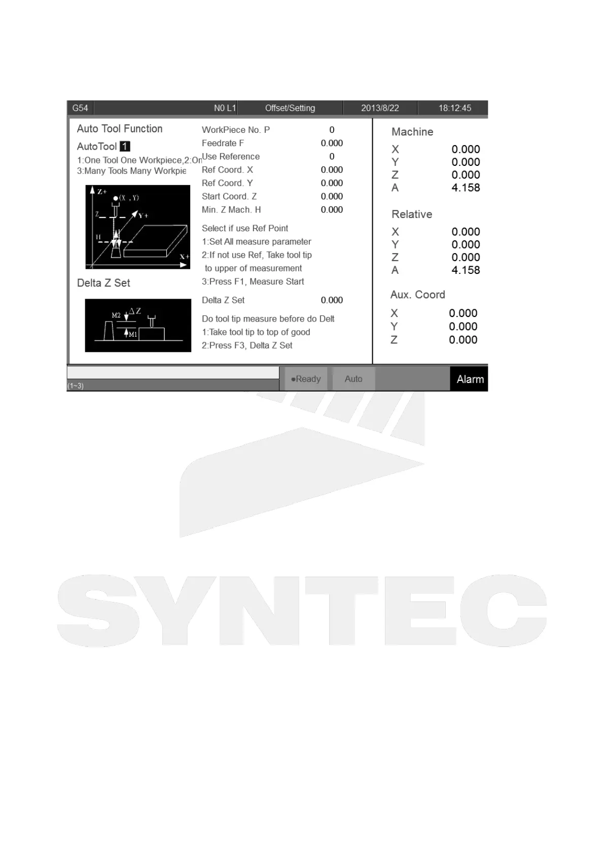 Z coord. Auto Tool Function is to measure different tool No. by tool alignment equipment. Because the