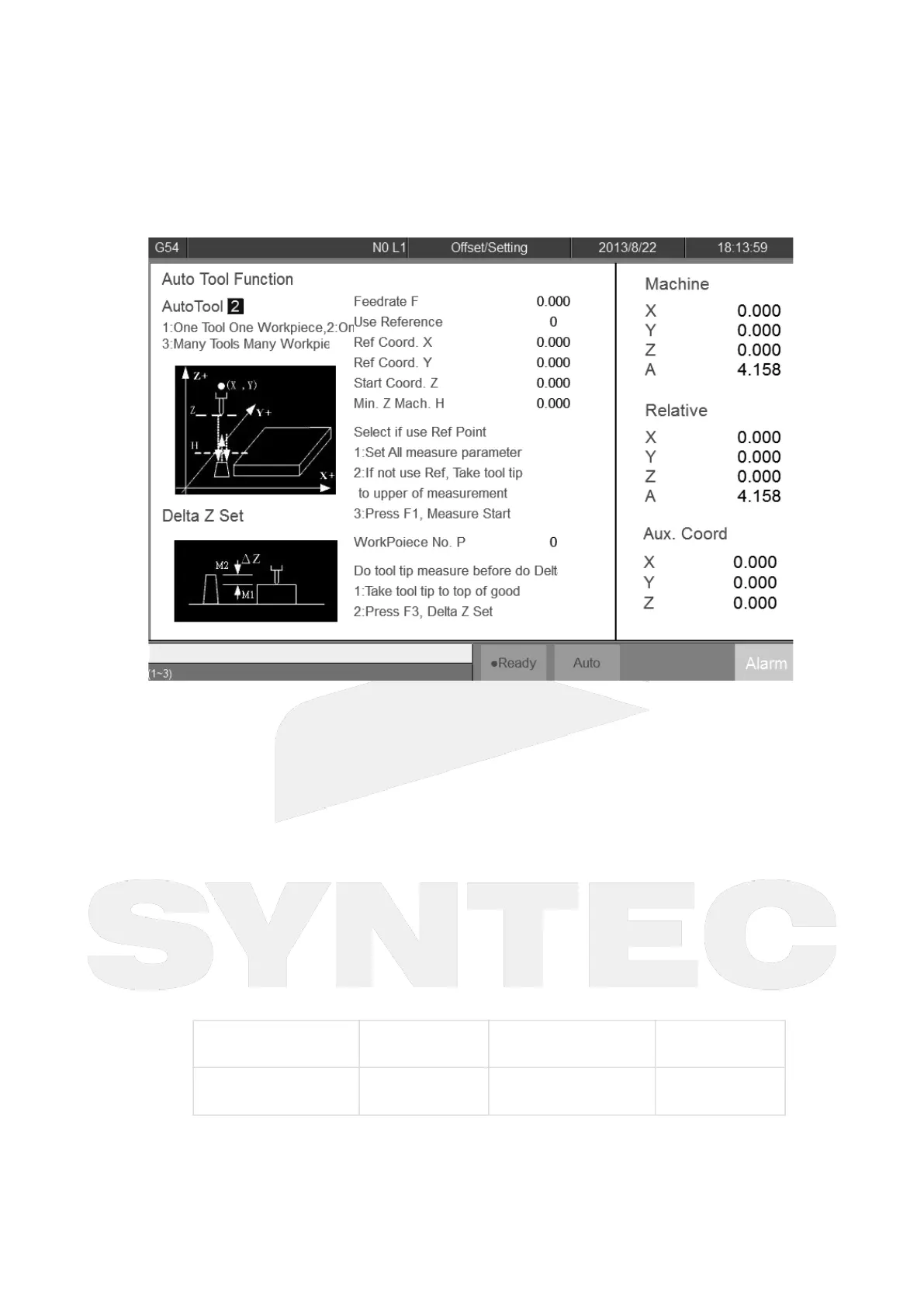 Move the tool tip (Manual) to the surface of workpiece, press Z Delta Set, the distance between