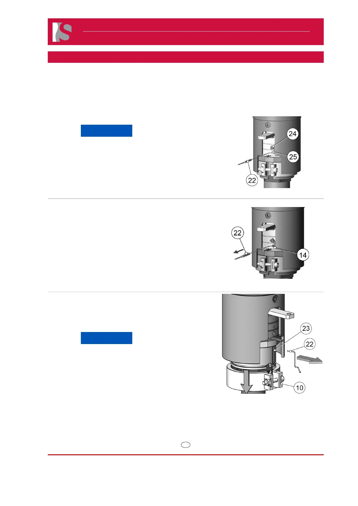 3) Pull the thermocouple (22) out of the bore of the heater band (14) and