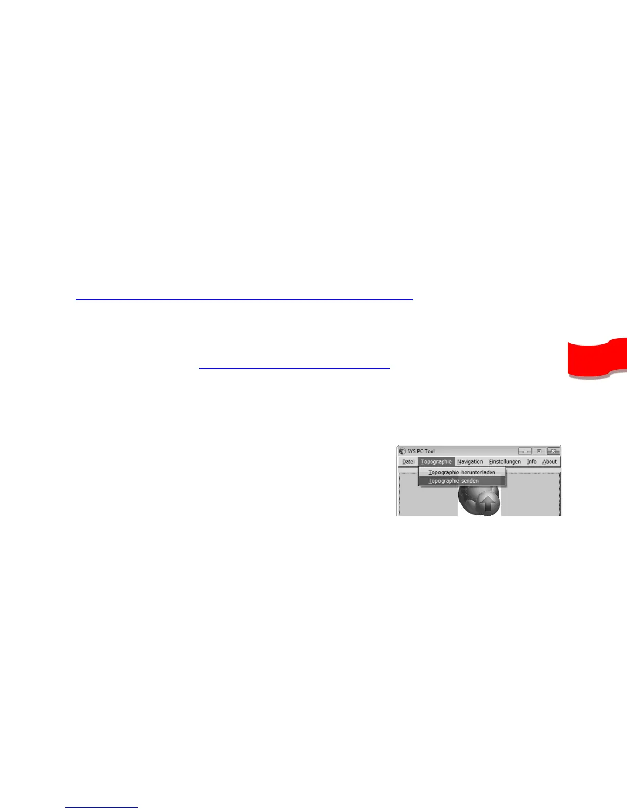 4) Im SYS PC Tool klicken Sie auf Topographie Topographie senden und wählen Sie die Datei