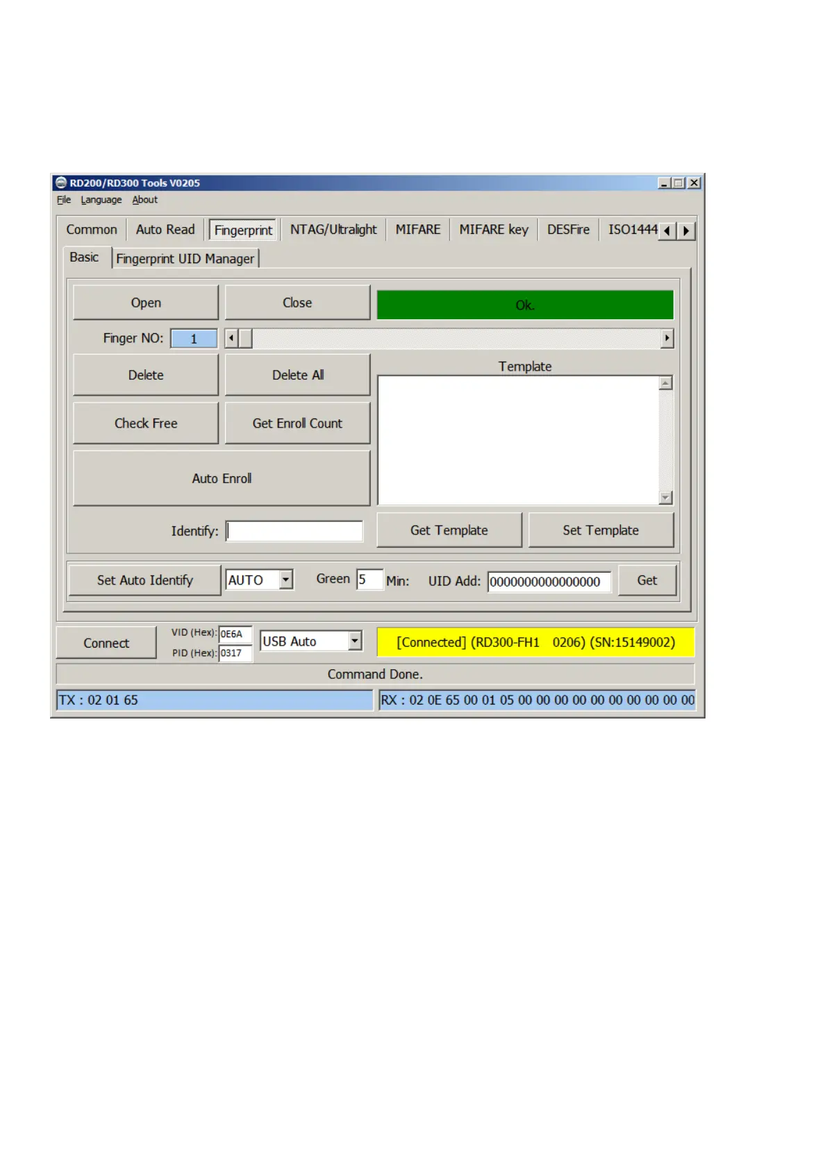 7. Auto Enroll: Select fingerprint number and click auto Enroll to save fingerprint to reader.