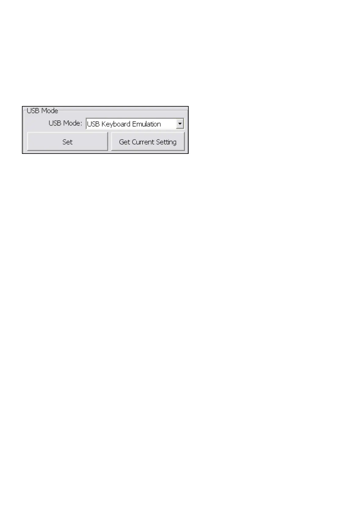 The default setting of USB Mode is USB Keyboard Emulation. This Keyboard mode would send