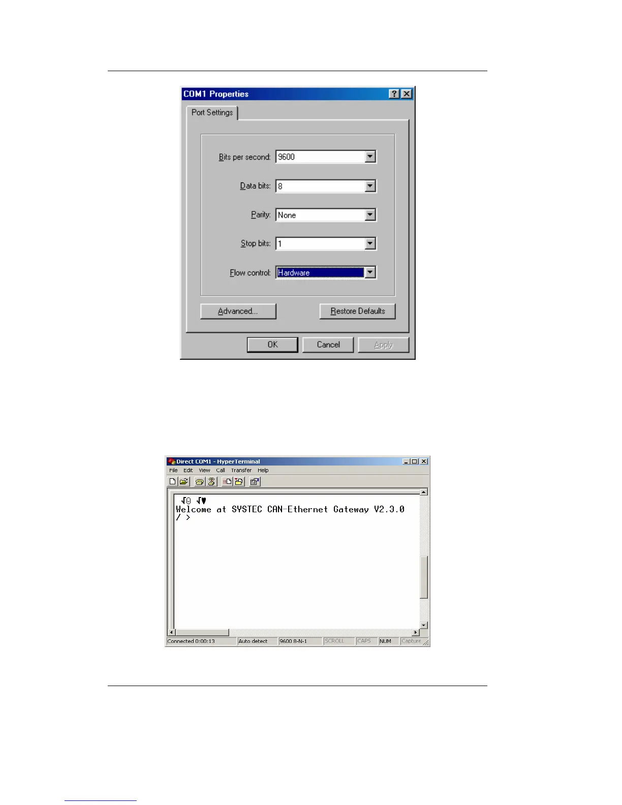 Sys Tec Electronic GW-003 - Figure 5: Hyperterminal Configuration (2); Figure 6: CAN-Ethernet Gateway Start Message