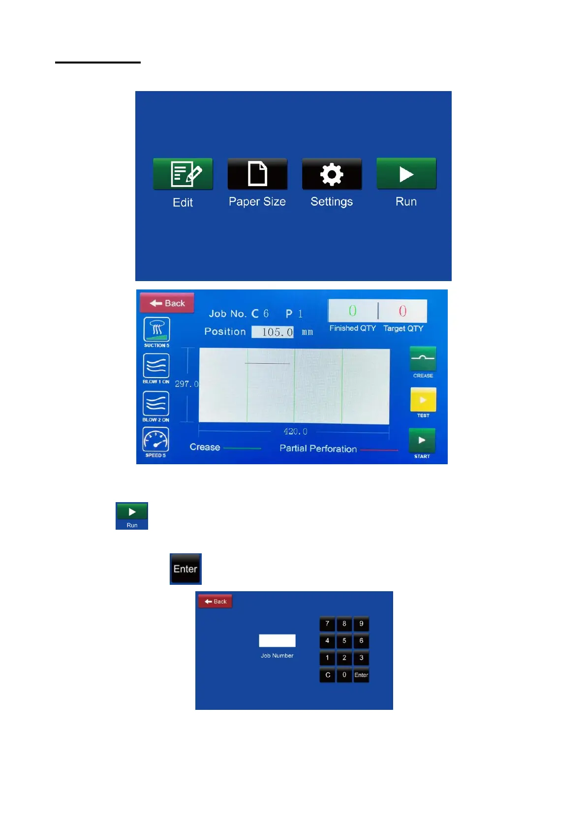 9.2 Tip on the Job No. figure. The keypad will pop up. Enter the job no. from the