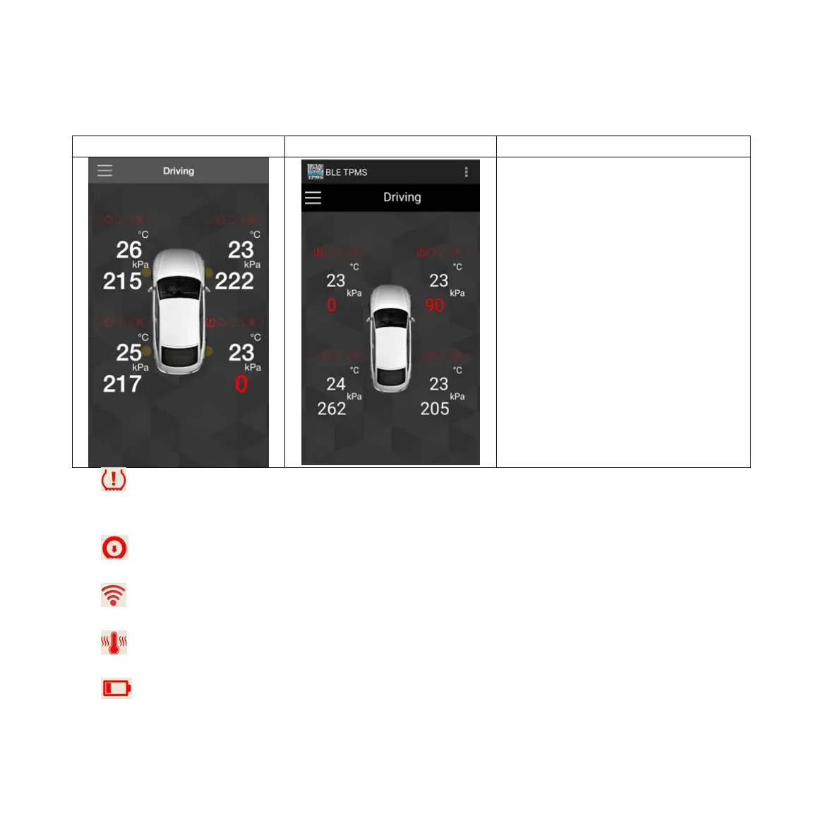 4. Warning of high tire temperature
